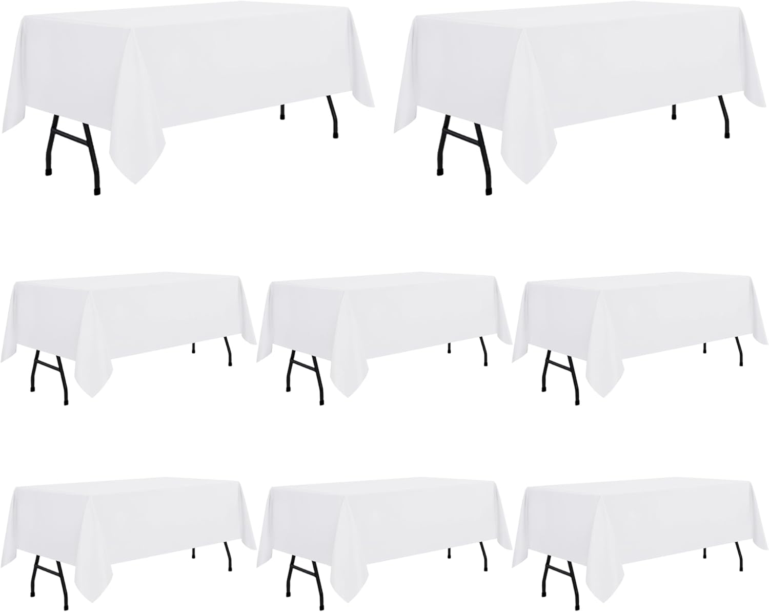 sancua 8 Pack White Tablecloth 60 x 84 Inch, Rectangle Table Cloth for 4ft Tables - Stain and Wrinkle Resistant Washable Polyester Table Cover for Dining Wedding Banquet Party Buffet Restaurant