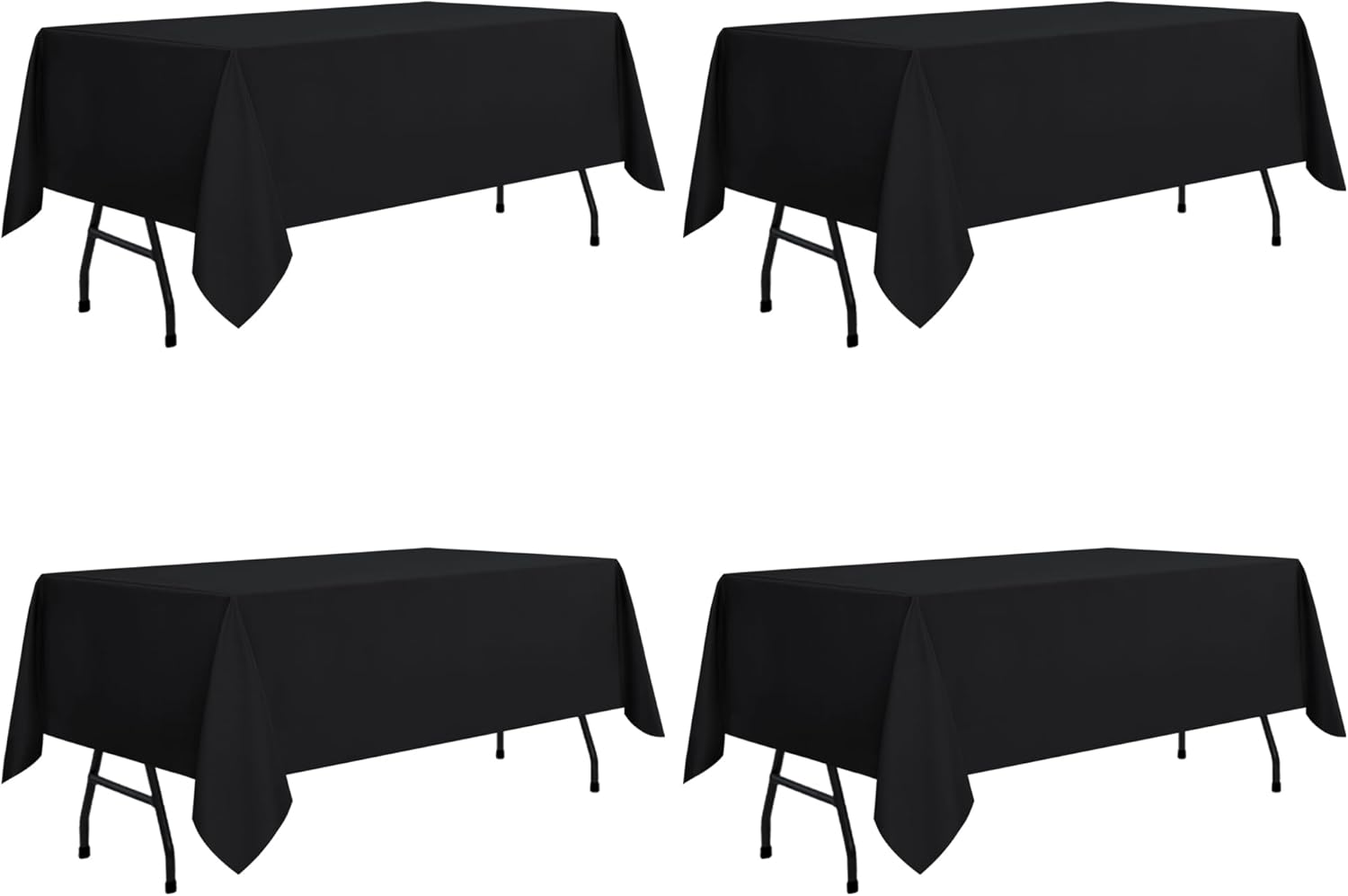 sancua 4 Pack Black Tablecloth 60 x 84 Inch, Rectangle Table Cloth for 4ft Tables - Stain and Wrinkle Resistant Washable Polyester Table Cover for Dining Wedding Banquet Party Buffet Restaurant