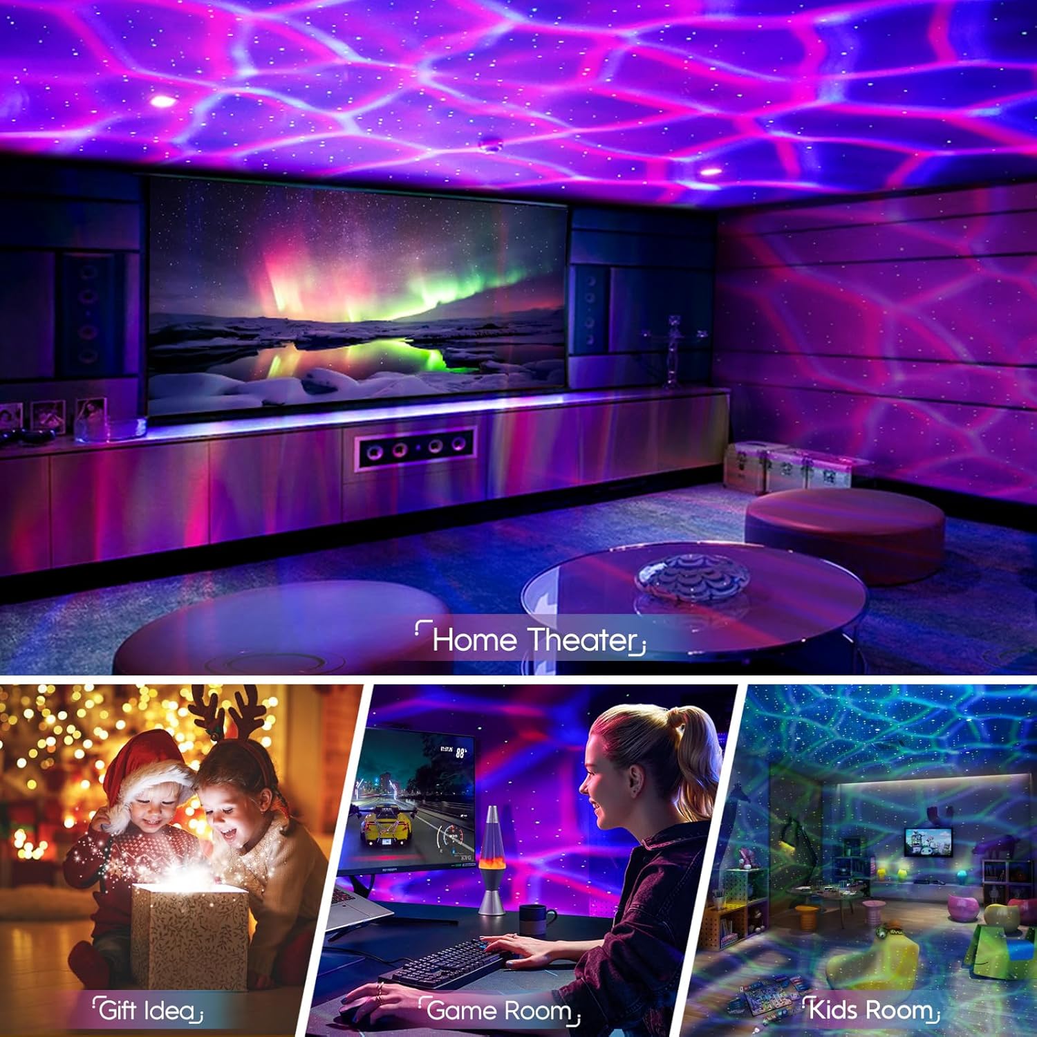 - Color Changing Light Effects & Sound Activated: Our galaxy projector LED lights for bedroom display multiple colors on the ceiling or wall simultaneously, unlike traditional galaxy lights. A colorful combination of star lights brings a strong visual impact for Halloween and Christmas decorations. You can activate the sound function from the remote, and the color of the LED Christmas lights will change in response to the music or clapping hands, creating a fun and energetic party atmosphere