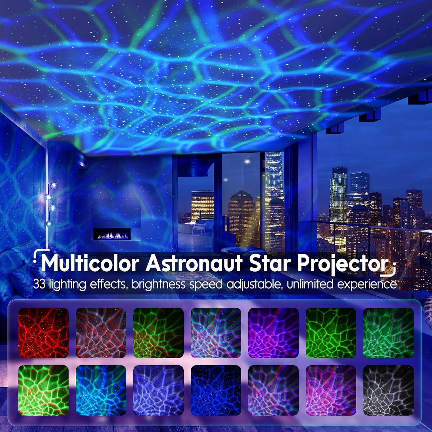 - Upgraded Astronaut Projector Night Light: Rossetta star projector is an exquisite astronaut projector that boasts 33 breathtaking lighting effects combined with twinkling green stars. Whether you choose to project it onto your room's wall or ceiling, it will immerse you in the enchanting beauty of the galaxy, creating a serene and tranquil ambiance. This versatile ambient light enhances movie nights, elevates date nights, and takes your gaming setup to the next level