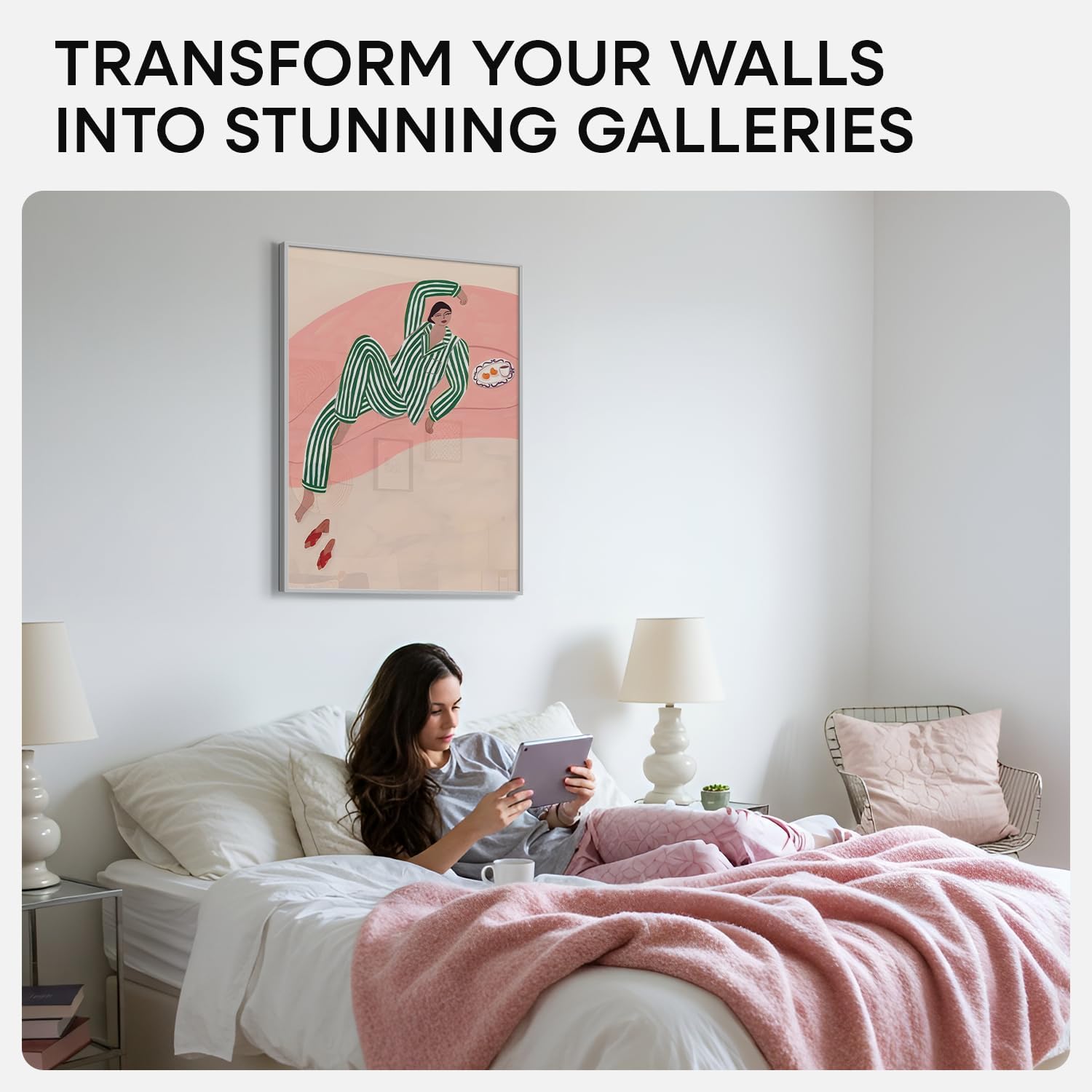 Homeforia 20x28 Picture Frame Silver, High End Metal 20 x 28 Poster Frame with Mat 14 x 22 for Photo, 20x28 Silver Frames Matted to 14x22 Print, 28x20 Hanging Frame, Tempered Glass, Wall Kit, Set of 1