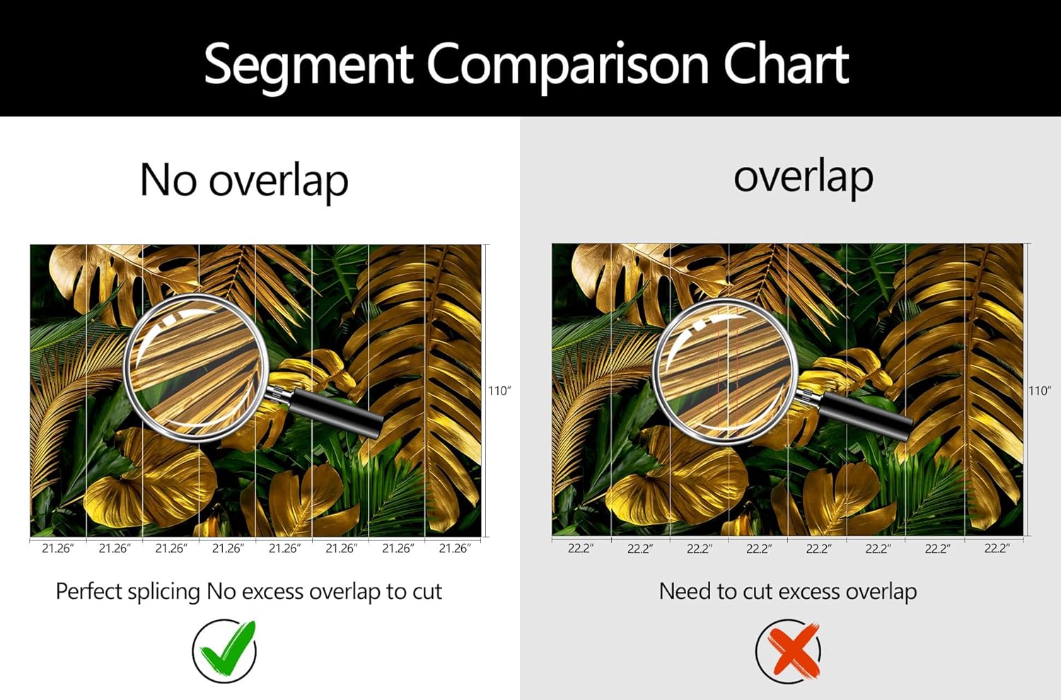 - Mural Size: The total size of this mural wallpaper is 170" x 110" / 432CM x 280CM (W x H), cut into 8 pieces, each measuring 21.26" x 110", for easy installation.