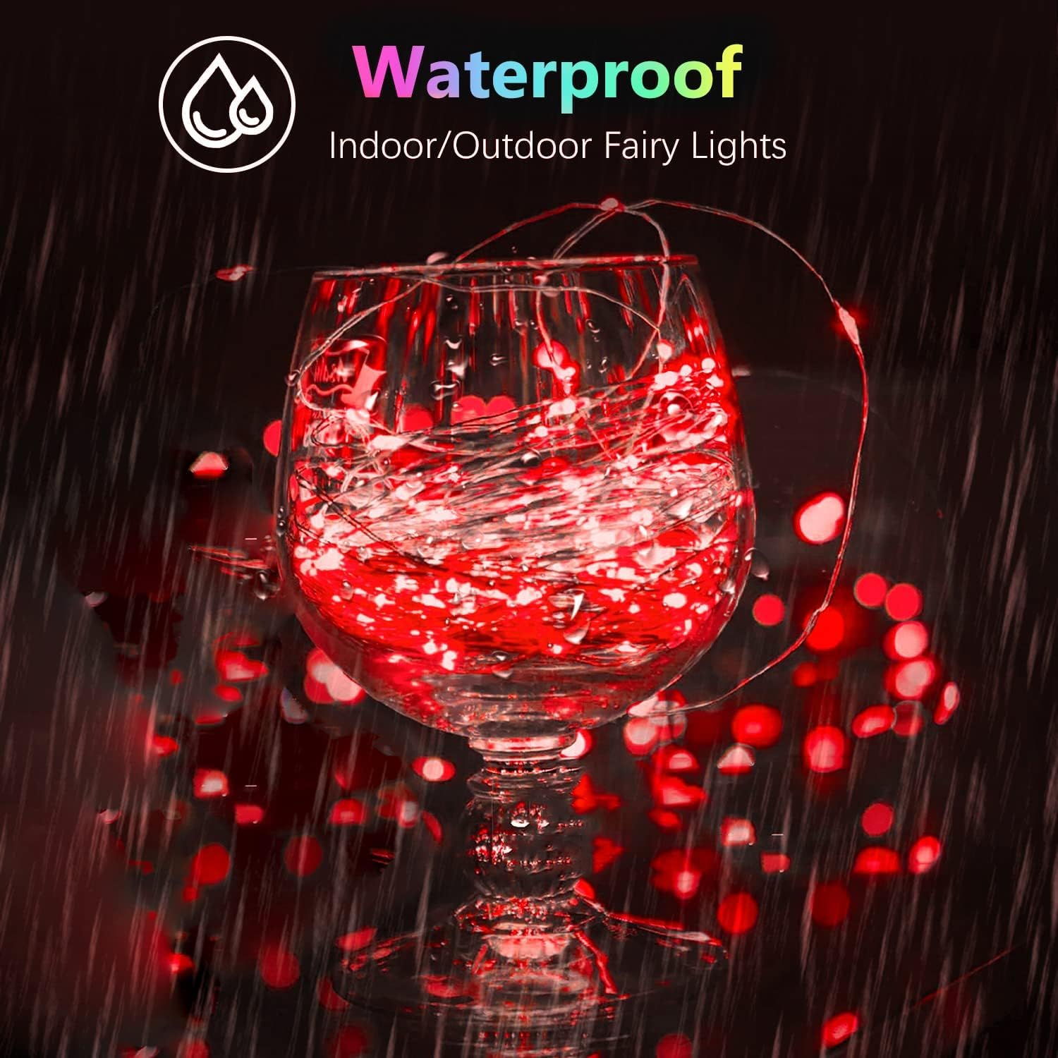 - Ultra-Bright and Durable Fairy Lights Battery Operated: Each string made of 100 super bright LEDs, 33 feet of sturdy silver color copper wire, ensuring longevity and reliability. These battery operated lights emit a vibrant, warm, and romantic red glow in the dark, making them ideal for indoor and outdoor decor, such as curtain, garland, Christmas tree, bedroom, centerpieces, fireplace, porch, patio, garden, party, and all kinds of holiday decorations.