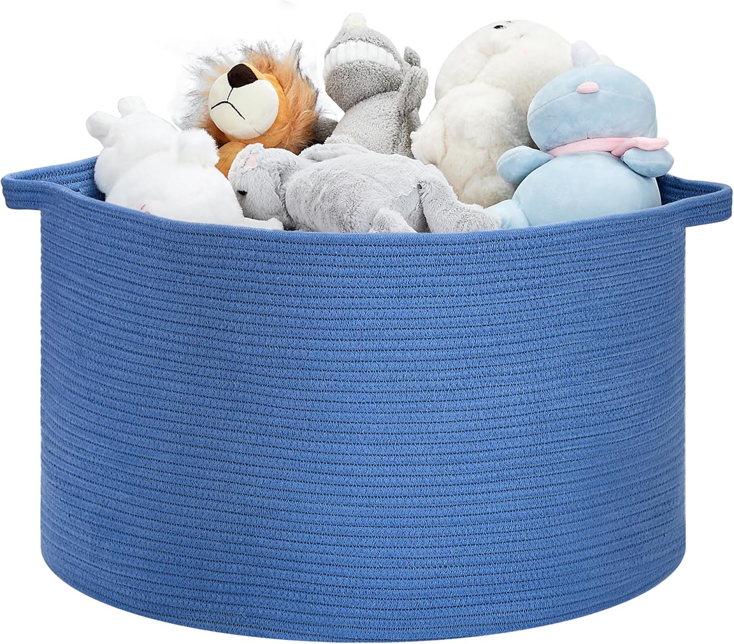Ravinte Large Storage Basket - 22"x 22"x 14" Blanket Basket for Living Room, Baby Toy Storage Basket, Cotton Rope Basket Woven Laundry Basket (Blue)