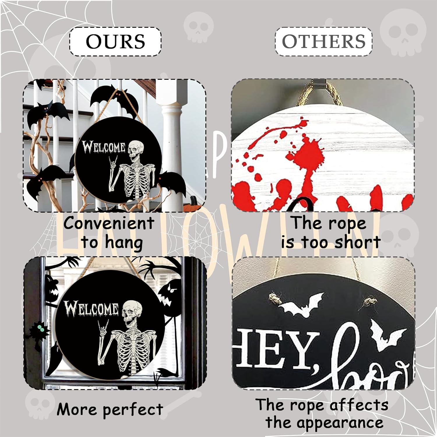 - Unique Halloween Flair: Adorn your exterior with the Skull Welcome sign, adding a captivating Halloween touch to your home. Elevate your Halloween celebrations with this exceptional hanging sign.