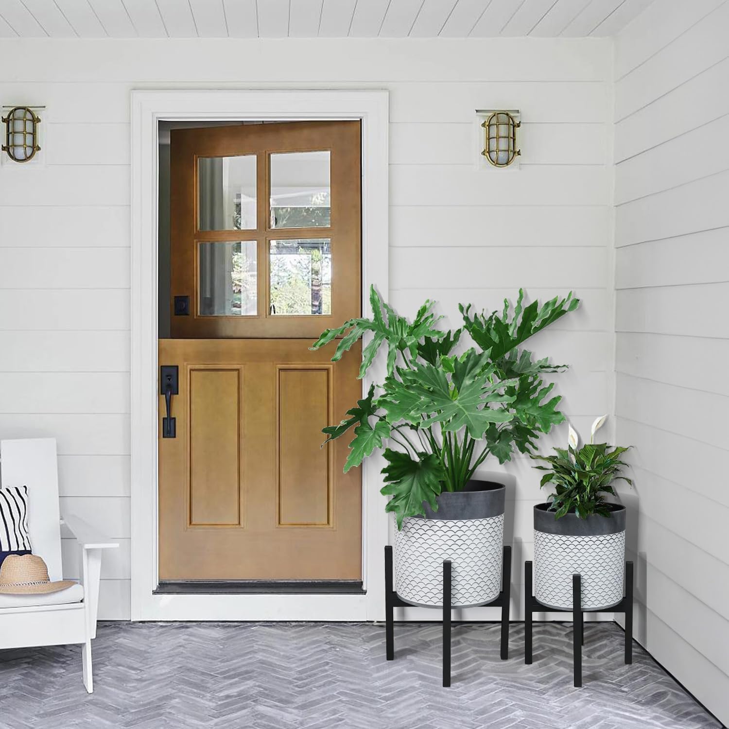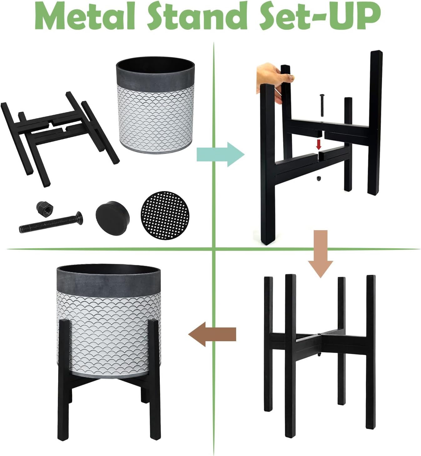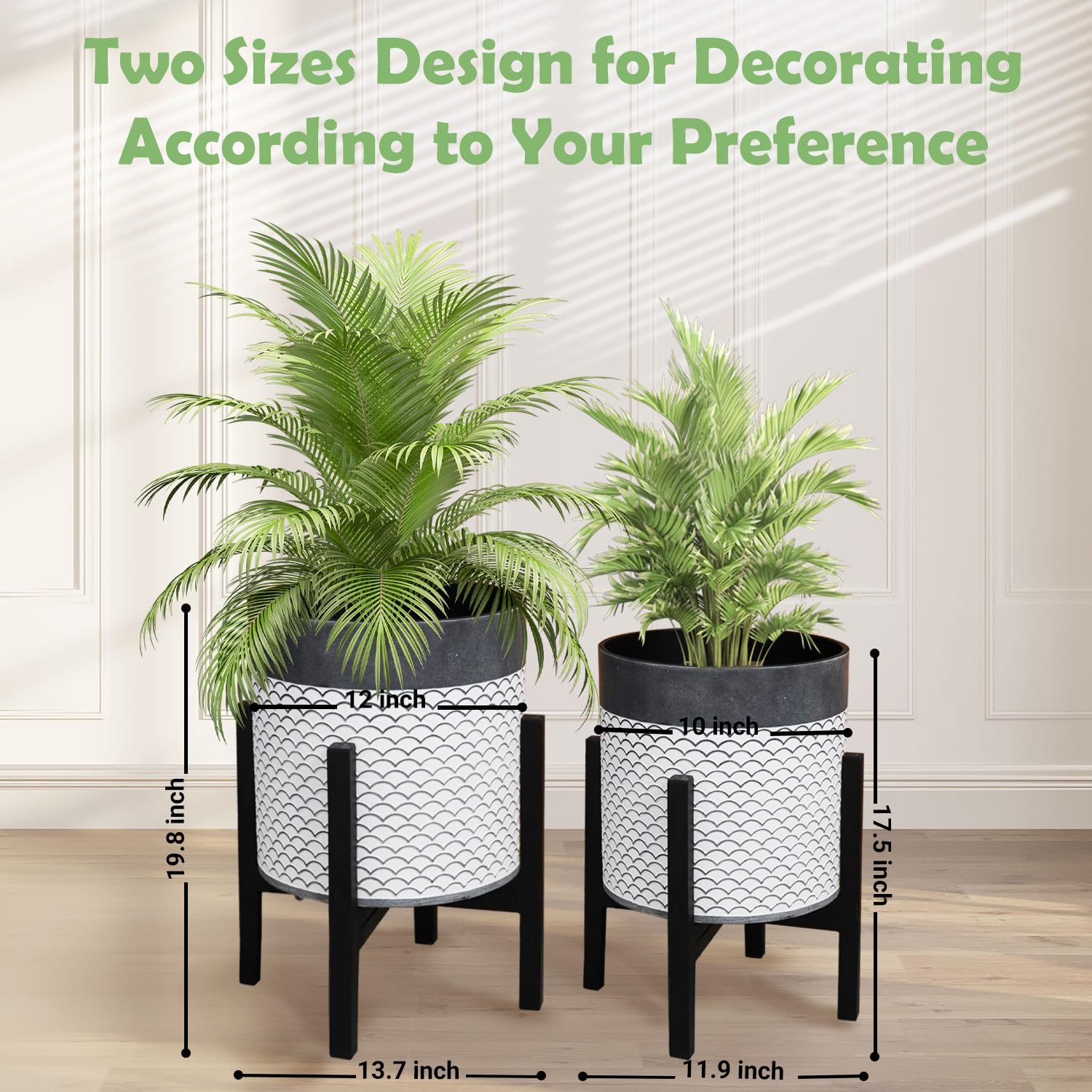 Planter with Stand Set of 2, Mid Century Plant Pots with Metal Legs Indoor, Modern Flower Pots with Drainage Holes, Decorative Garden Pot for Living Room, Office, Garden, or Balcony 10 & 12 inches