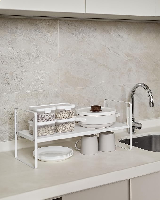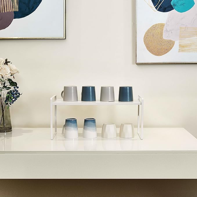- MULTIFUNCTIONAL STORAGE: Using this cabinet shelf provides you with more storage space and allows for organizing various items such as bowls, cups, plates, dishes, snacks, books, magazines, spices and more. With this cabinet organizer, you can better organize your items and easily access the items you need.