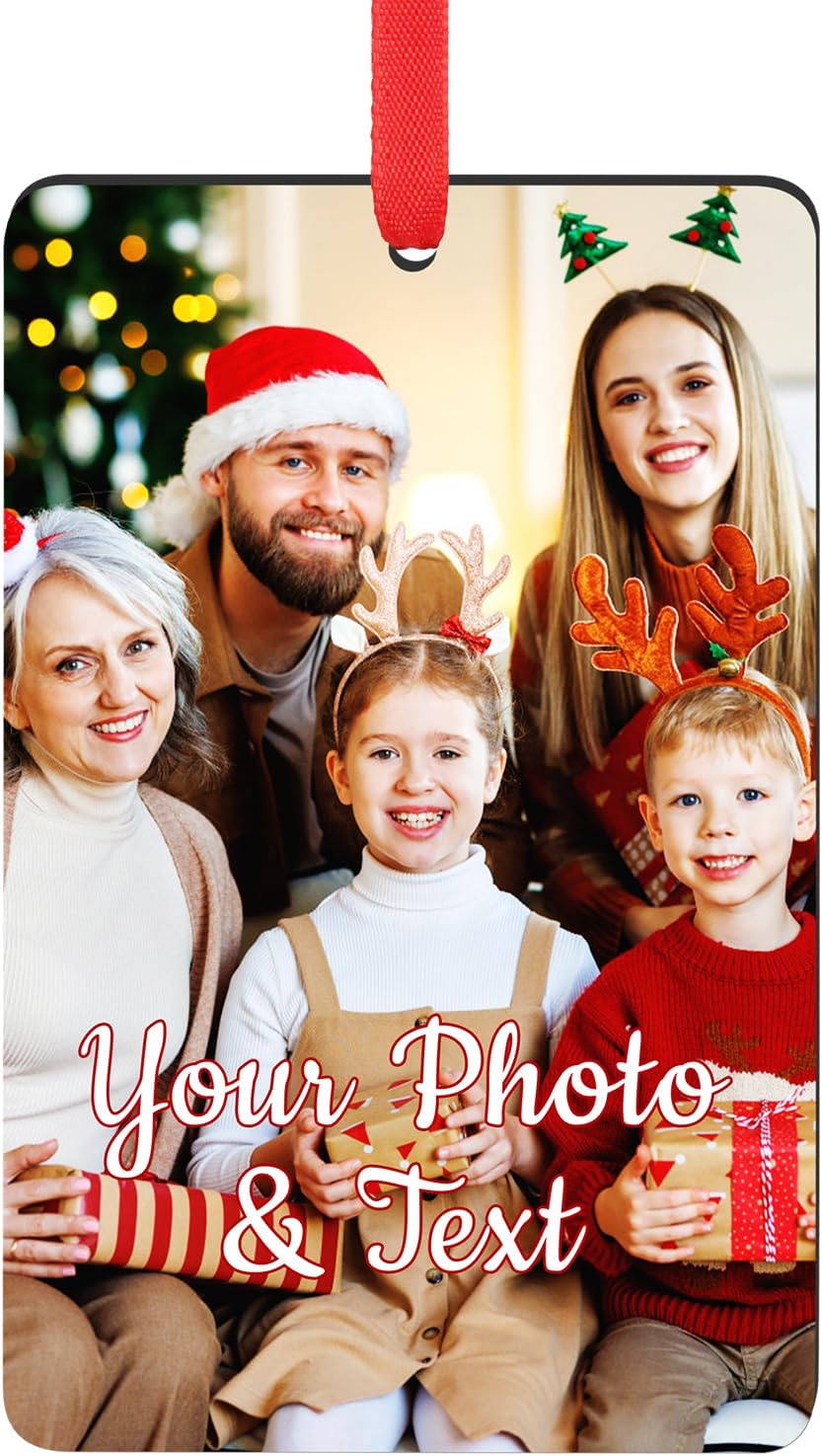 Personalized Christmas Ornaments 2025, Wood Custom Photo Text Hanging Ornament Customized Christmas Tree Decorations Gift for Family, Kids, Friends, Couples, Wedding