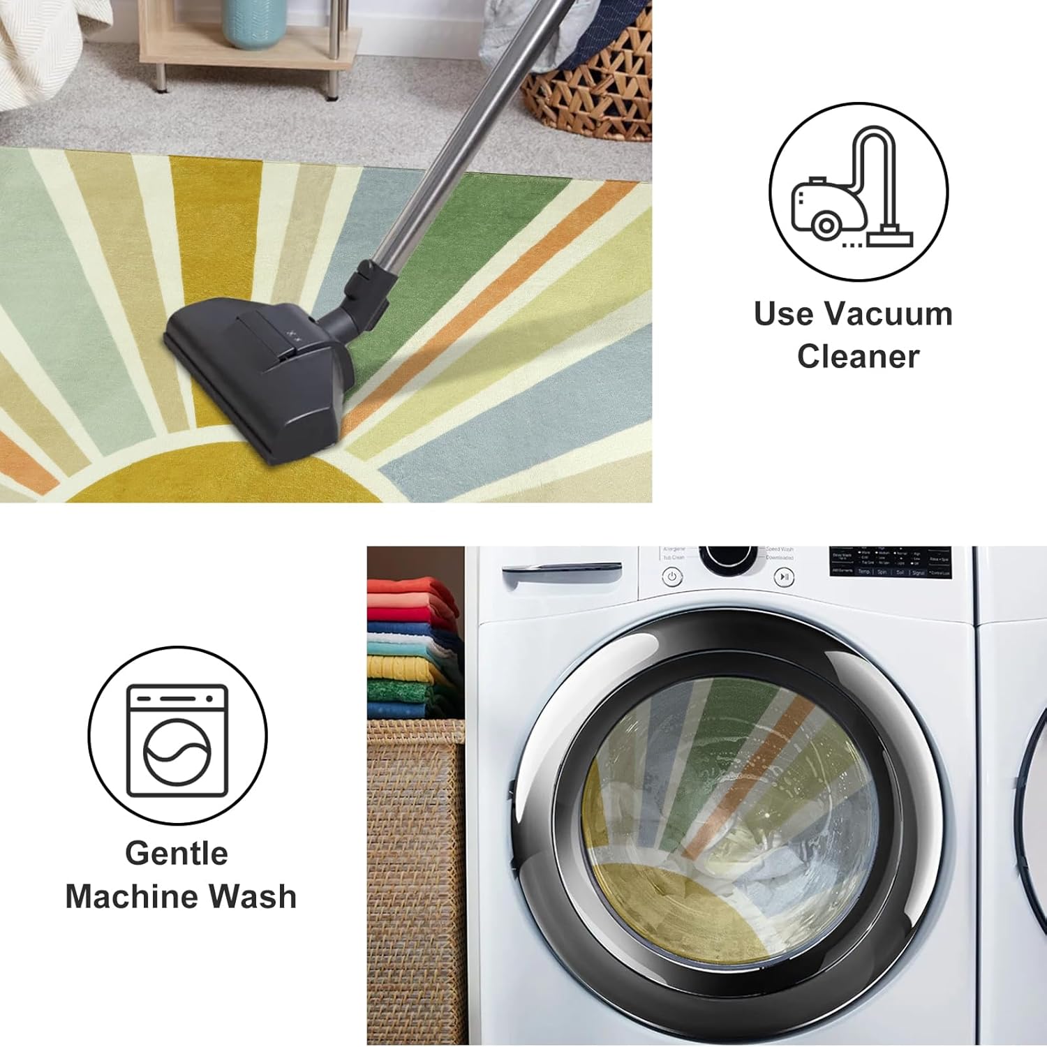 - Pattern Design:The 5x7 kids rugs features a lovely colorful sun pattern. As a home decor, it creates a warm and lively atmosphere and light up your home.