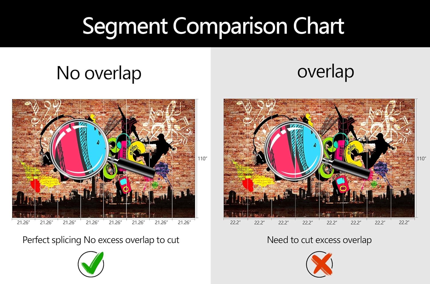 - Mural Size: The total size of this mural wallpaper is 170" x 110" / 432CM x 280CM (W x H), cut into 8 pieces, each measuring 21.26" x 110", for easy installation.