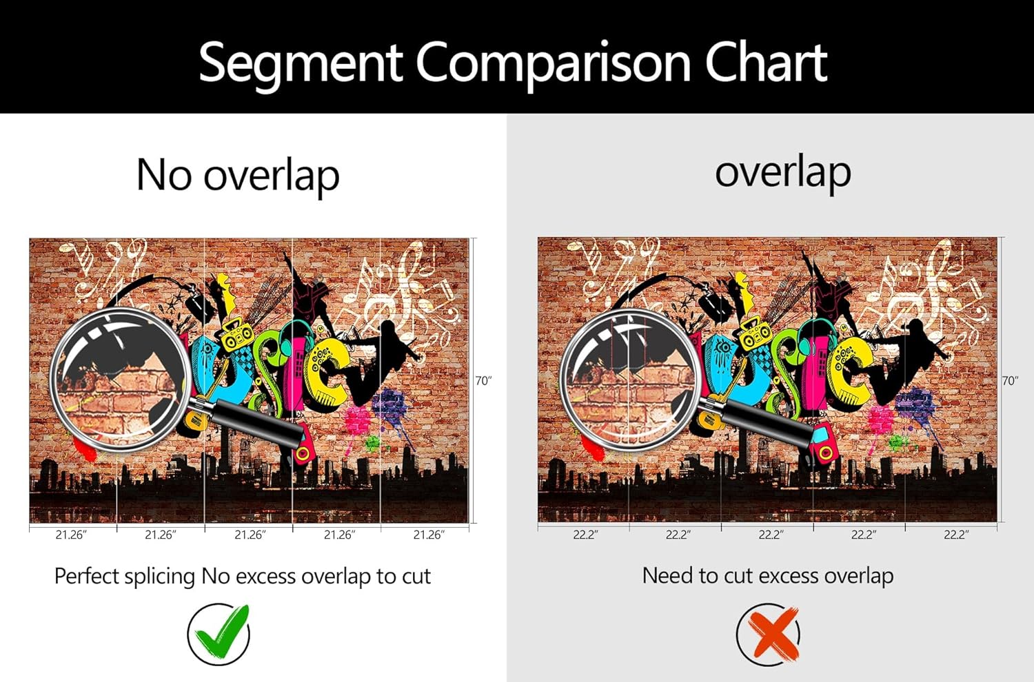 - Mural Size: The total size of this mural wallpaper is 106" x 70" / 270CM x 178CM (W x H), cut into 5 pieces, each measuring 21.26" x 70", for easy installation.