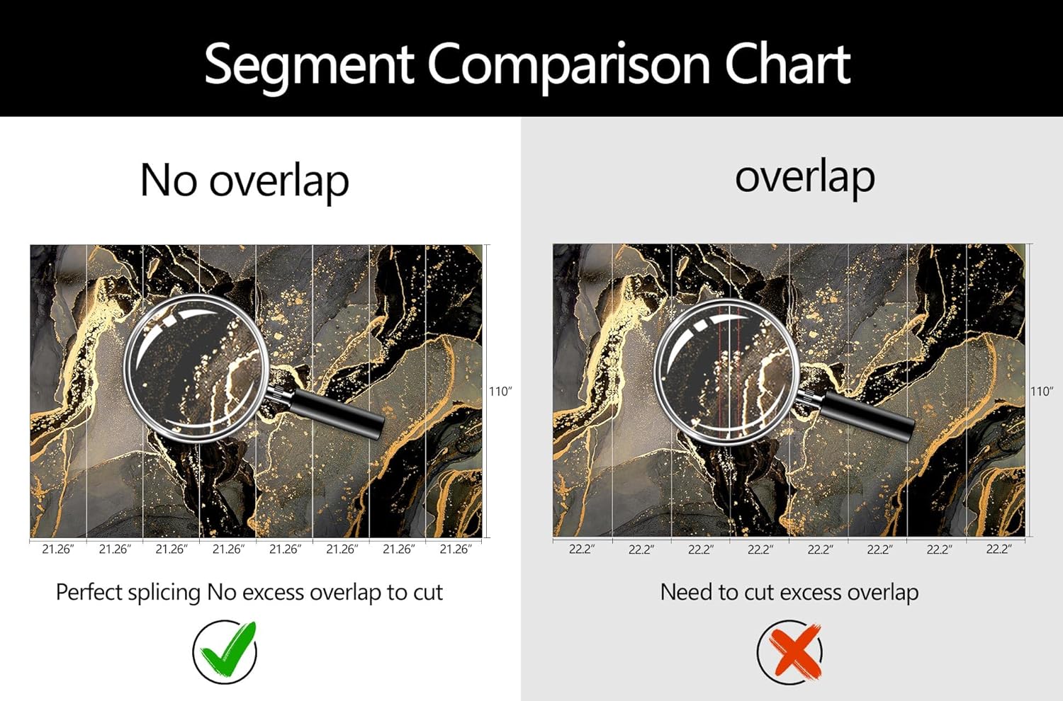 - Mural Size: The total size of this mural wallpaper is 170" x 110" / 432CM x 280CM (W x H), cut into 8 pieces, each measuring 21.26" x 110", for easy installation.