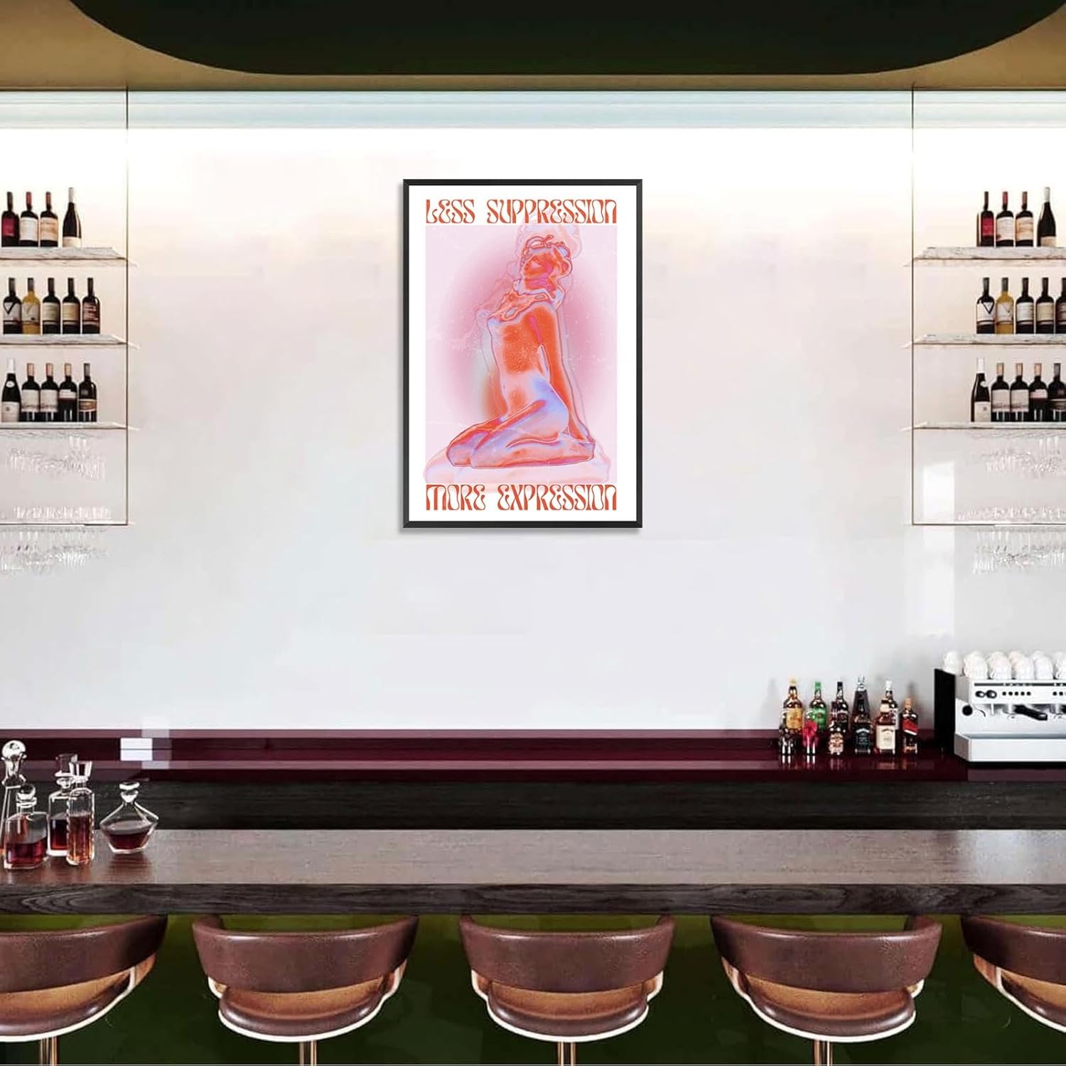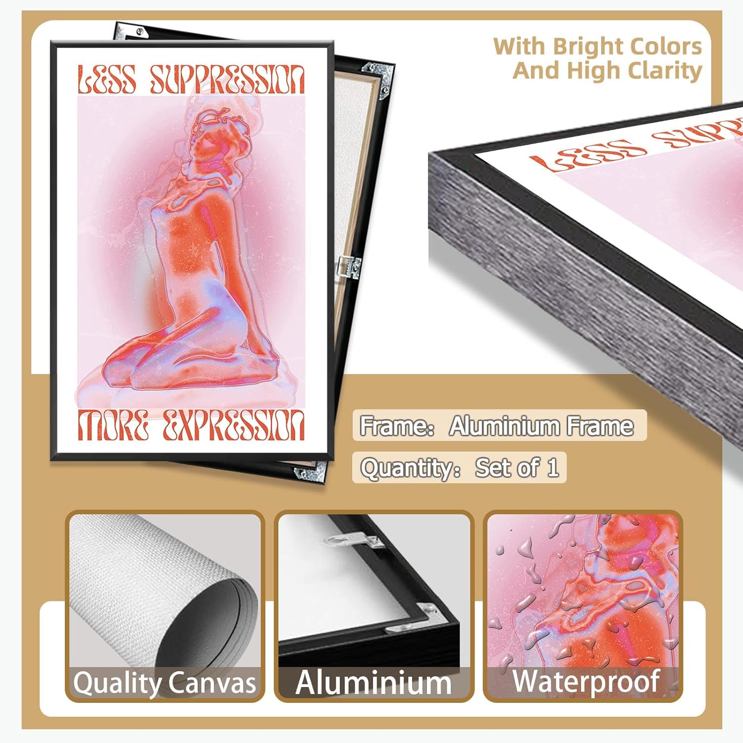 Spiritual Affirmation Art Poster Pink Woman Canvas Wall Art Aesthetic Pictures Sexy Woman Prints Painting Trendy Gradient Aesthetic Wall Decor Living Room Bedroom 12x16in Framed