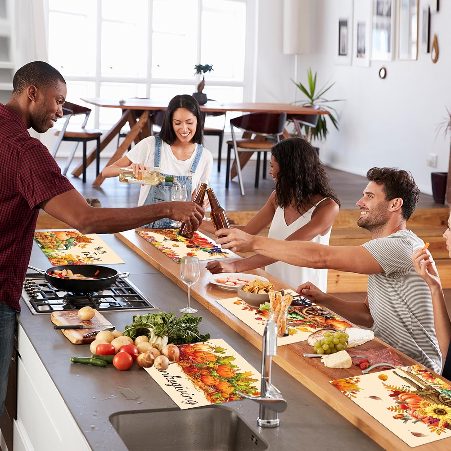 - 【Unique Design & Stylish】Elevate your fall dining experience with our Thanksgiving placemats! The design of the Thanksgiving theme placemat incorporates classic elements of the turkey, maple leaf, pumpkin and harvest. Fall harvest placemats add a touch of brilliance to your table setting. Impress your guests and create an unforgettable cheerful atmosphere for your party.