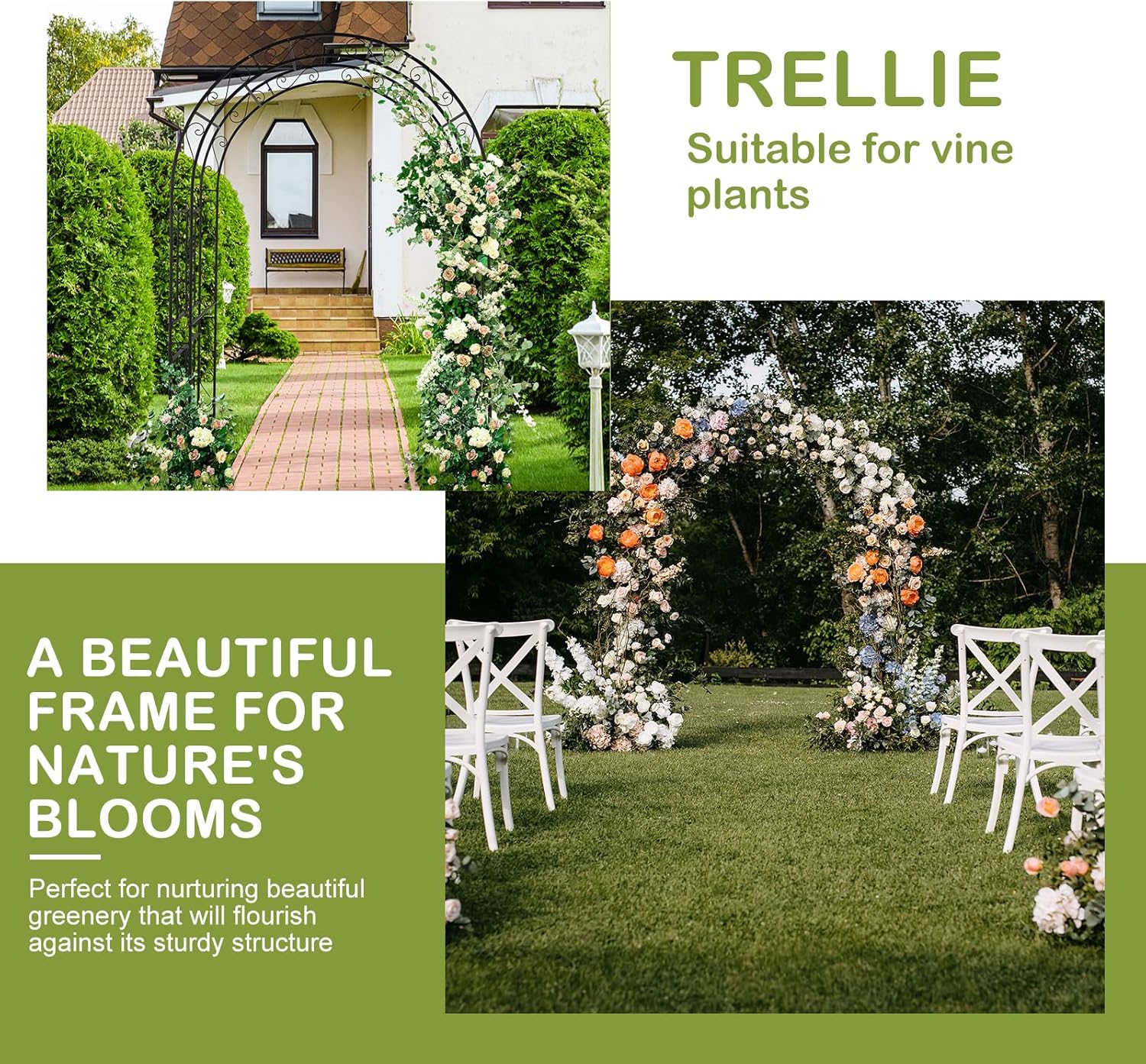 - 【GREAT FOR EVENTS】This walkway trellis is also great for weddings, anniversaries, birthday party, Christmas or other important occasions decoration. Decorate it with balloons, leaves, party banners, tulle, LED fairy lights or anything else you want, makes your events classic and fabulous