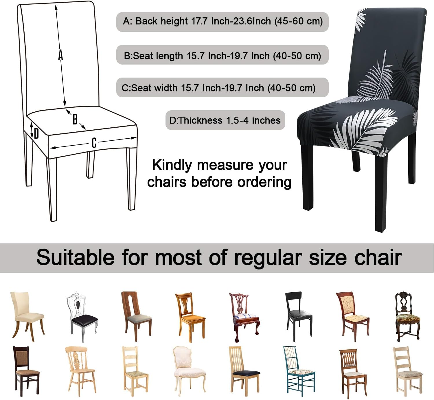 - 【High Quality of Chair Cover】- JQinHome dining room chair covers are made of durable and high persistence polyester and stretchy spandex fabric, soft, comfortable and wrinkle resistant, no ironing required; Stretchable Material,stretch that recovers quickly,secure fit with sewn-in elastic hem.
