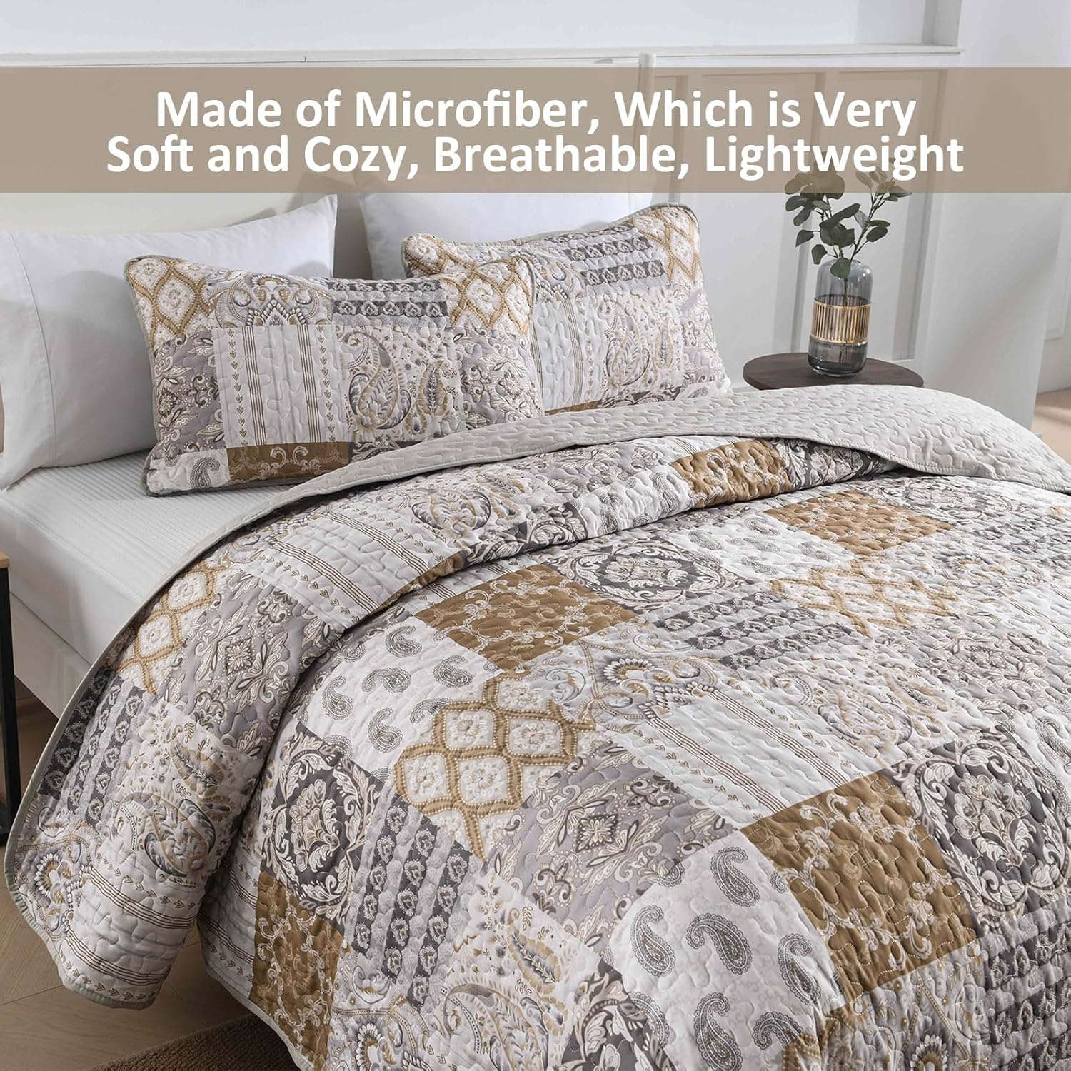 - SOFT MICROFIBER BEDDING SET: The cozy brown patchwork quilt king size bedding is made from high-quality microfiber, our quilt sets king is soft to touch, lightweight, and breathable. The firm stitch ensures long-lasting durability.