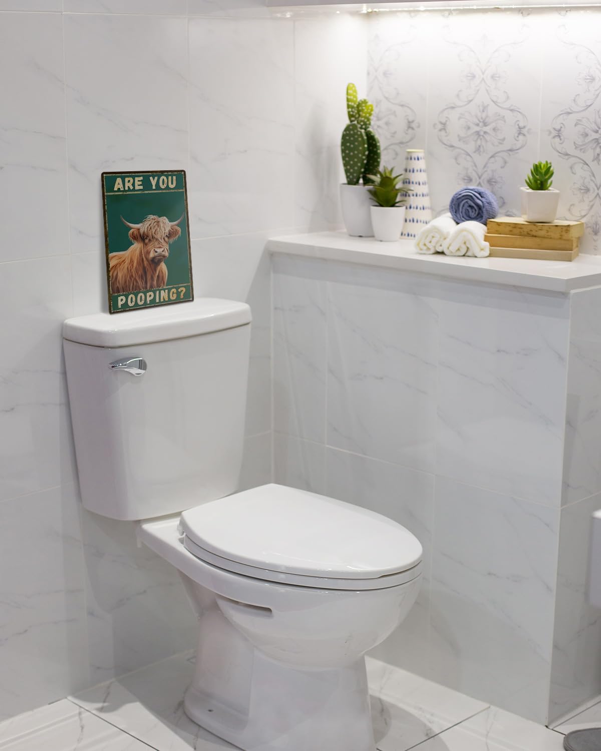 ALKB Funny Highland Cow Are You Pooping Metal Signs Vintage Farmhouse Bathroom Wall Decor Highland Cow Lovers Gift 8 x 12 Inch
