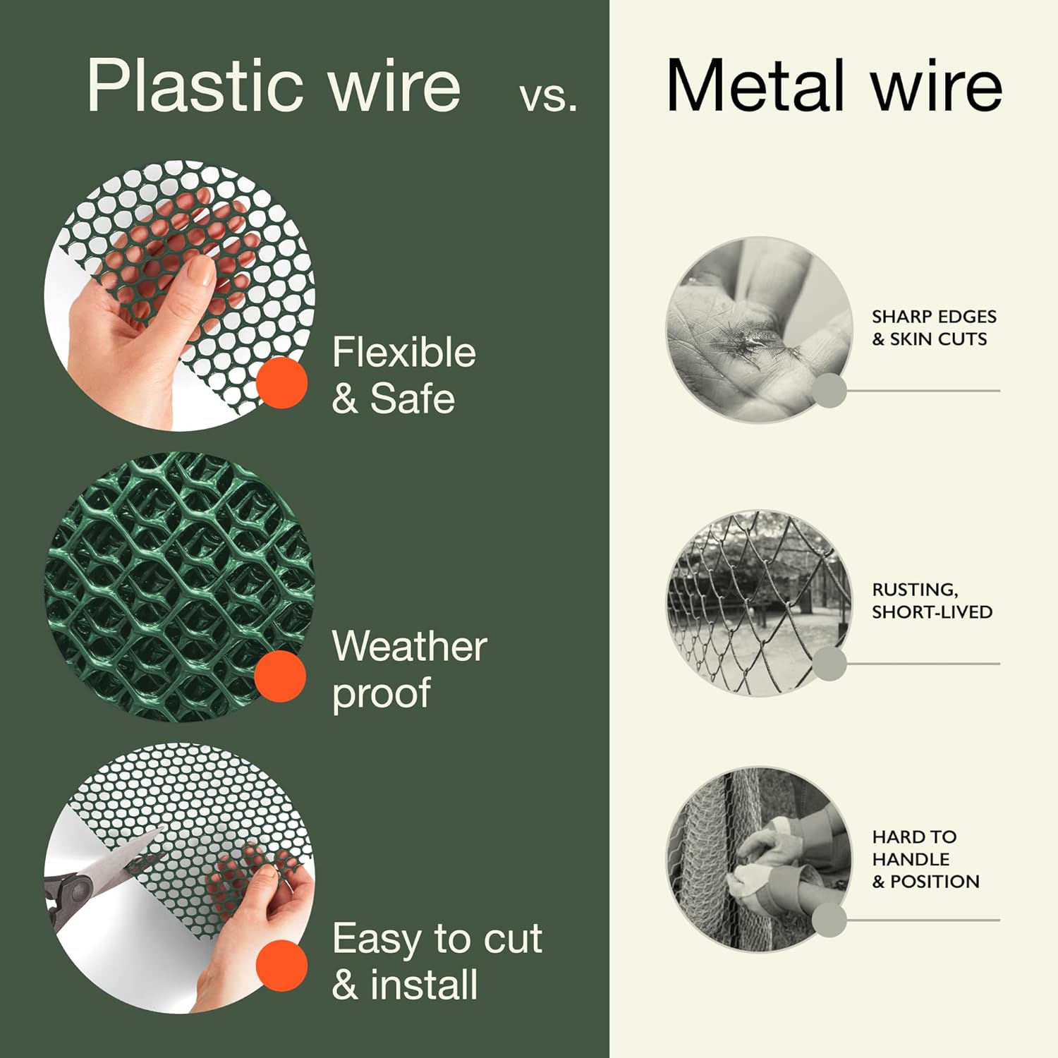 - Versatile Uses: This plastic mesh is perfect as a garden fence animal barrier, chicken wire mesh, or balcony netting. Great for a dog fence outside or a temporary fence, it adds safety and style to your outdoor spaces