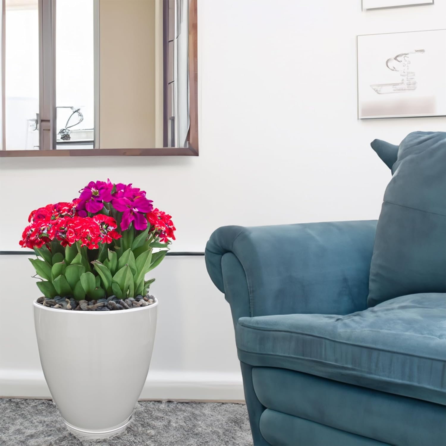 - 【Sustainable Craftsmanship with Molded Design】Crafted using recycled plastic resin regrind, this molded flower planter showcases a commitment to sustainability with its low carbon footprint. The planter boasts a wall thickness of 0.4 inches, ensuring durability