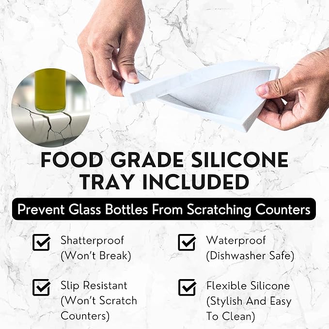 - Safe & Hygienic: Our glass olive oil dispenser bottle ensures no leaching of plastic chemicals into your oils, sauces, and more. Clear surface for easy monitoring and refilling. Trust in quality and enjoy worry-free cooking and seasoning.