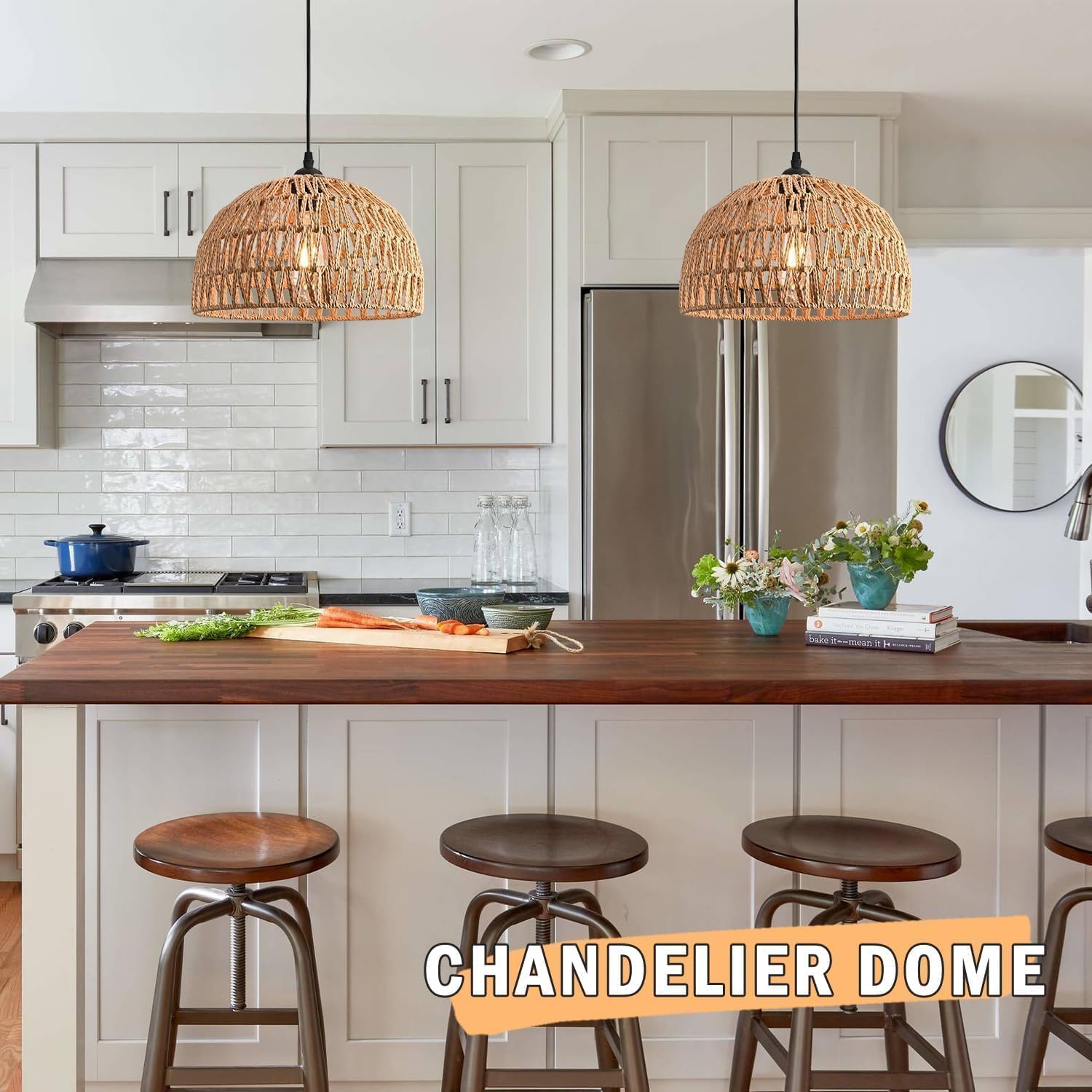 - [Suitable for any scene]: This 12.2 inch plug-in braided pendant light is suitable for kitchen island, dining room, living room, room, all kinds of places can bring you different experience, braided twine light with plug-in cord is more flexible and convenient to use, you can choose its installation position according to your actual need.