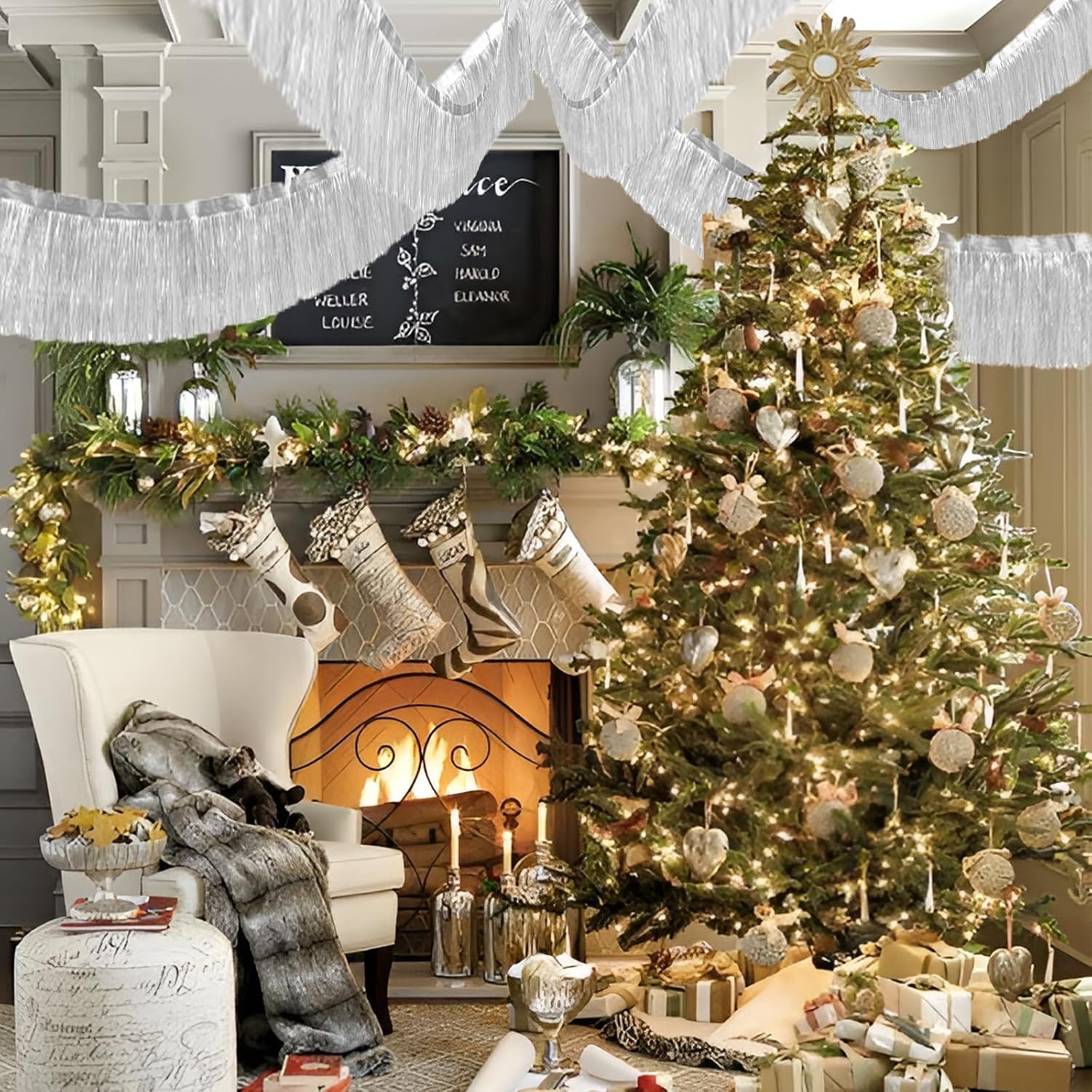 Silver Foil Fringe Garland 10FT 6packs, Metallic Foil Tinsel Fringe Banners for Parade Float Decorations Wedding, Birthday Party Graduation (six Silver)