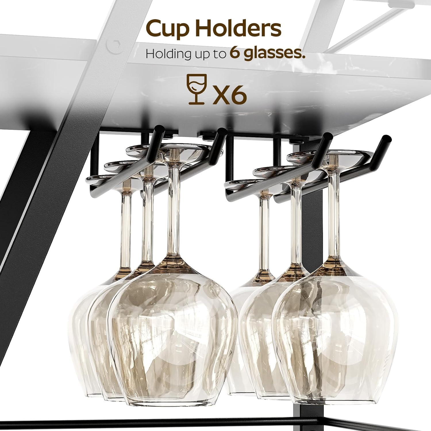 - Cup Holders Included: This bar cart has 2 quality metal cup holders for storing 6 goblets, ensuring stability while the cart is in motion. Whether you're preparing drinks or moving the cart during a gathering, you can use it with confidence