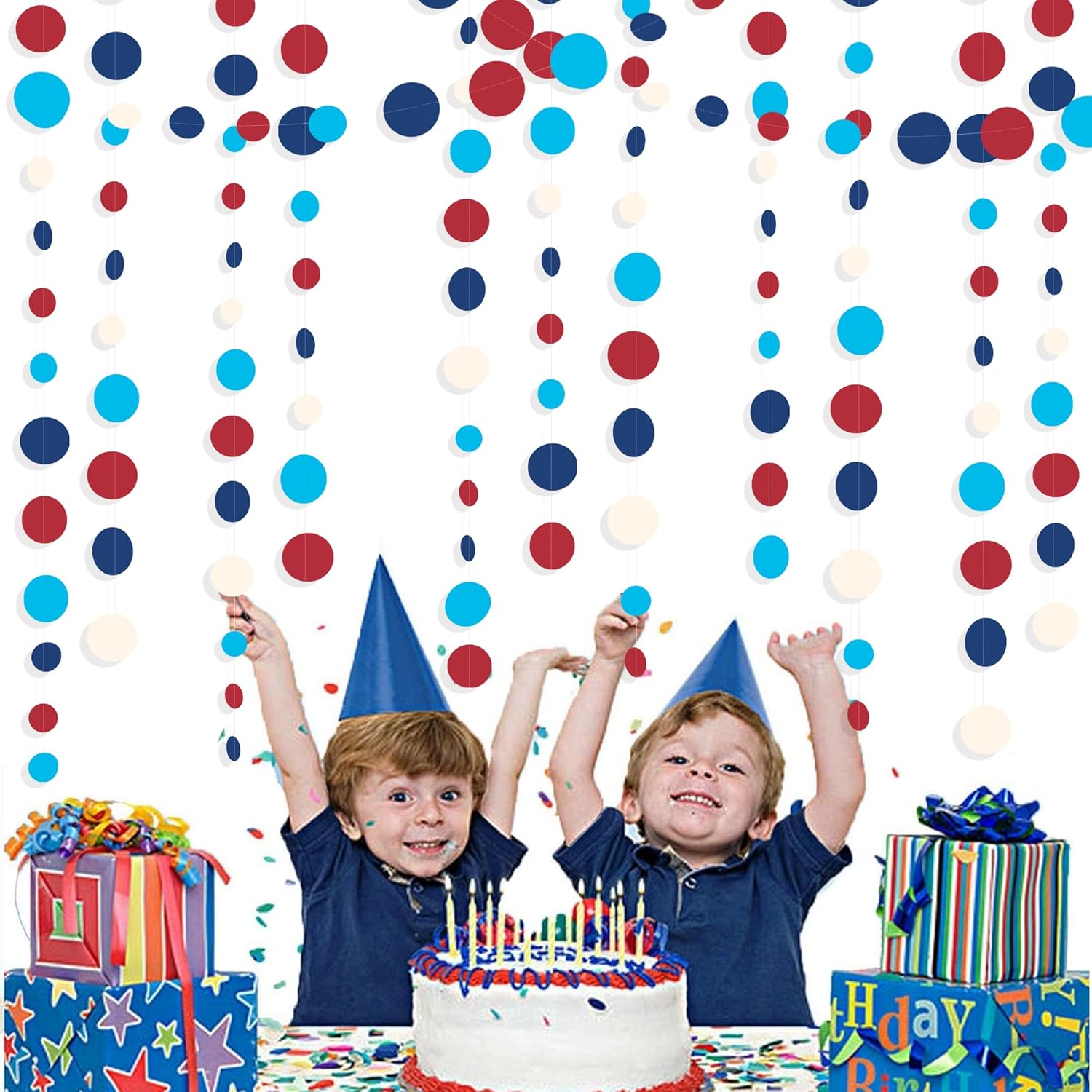 - 🔴PACKAGE CONTAINS- 4 set of nautical theme circle dot party garland banner,each string is 11.5 feet/3.5 meters, Total is 14 meters/46 feet.
