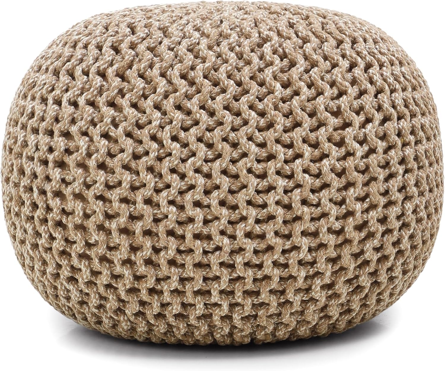 - MAKES A LOVELY, THOUGHTFUL GIFT IDEA: Our knit braided accent cord pouf ottoman is a gift that will keep on giving for many years to come. Surprise a friend or family member with one for a housewarming party, birthday, holiday, and other special occasions. Mix and match for a fun pop of color or choose one that best matches your décor and aesthetic.