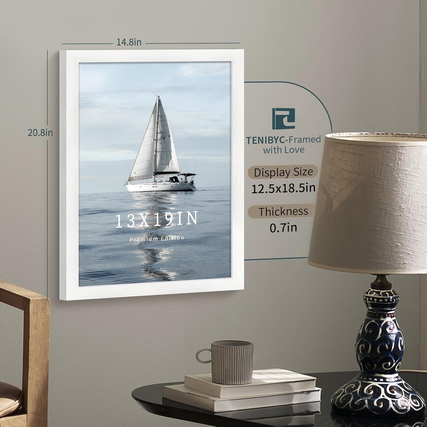 13x19 Picture Frame 3 pk, Textured White Solid Wood Poster Frame, HD Tempered Glass, Wall Gallery Frame