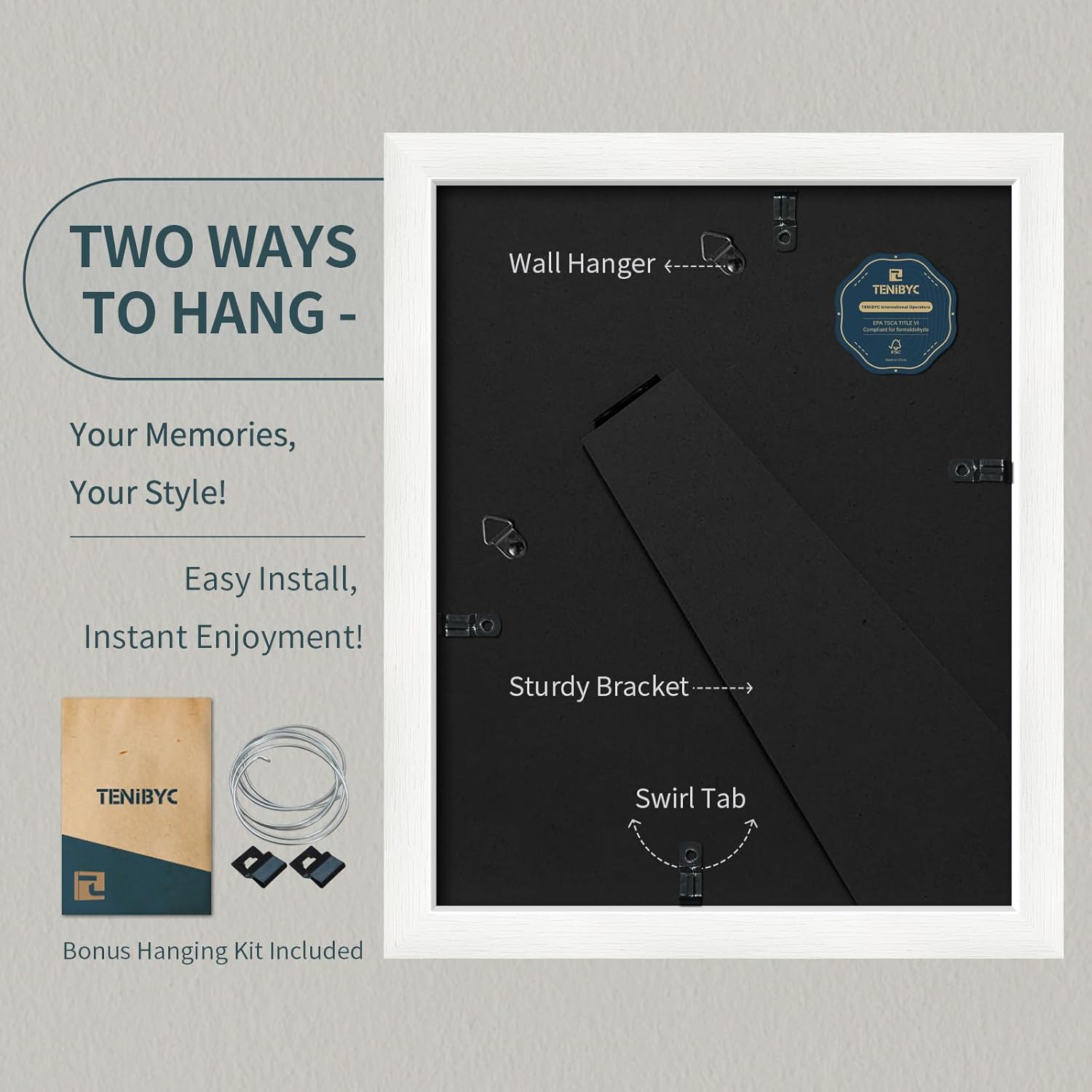 - Conscious Craftsmanship: Witness TENIBYC's dedication to sustainability and uncompromised quality. Our sturdy, enduring frames are our vow to Mother Nature. Reinforced corners and backboards ensure your treasured memories are elegantly preserved forever.