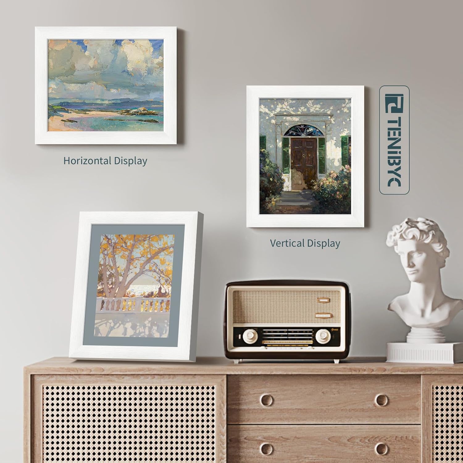 - Timeless Elegance: Experience the serene beauty of our white wood grain frame. Expertly crafted by TENIBYC's dedicated designers, it blends seamlessly with any decor, adding a touch of timeless charm to your space.