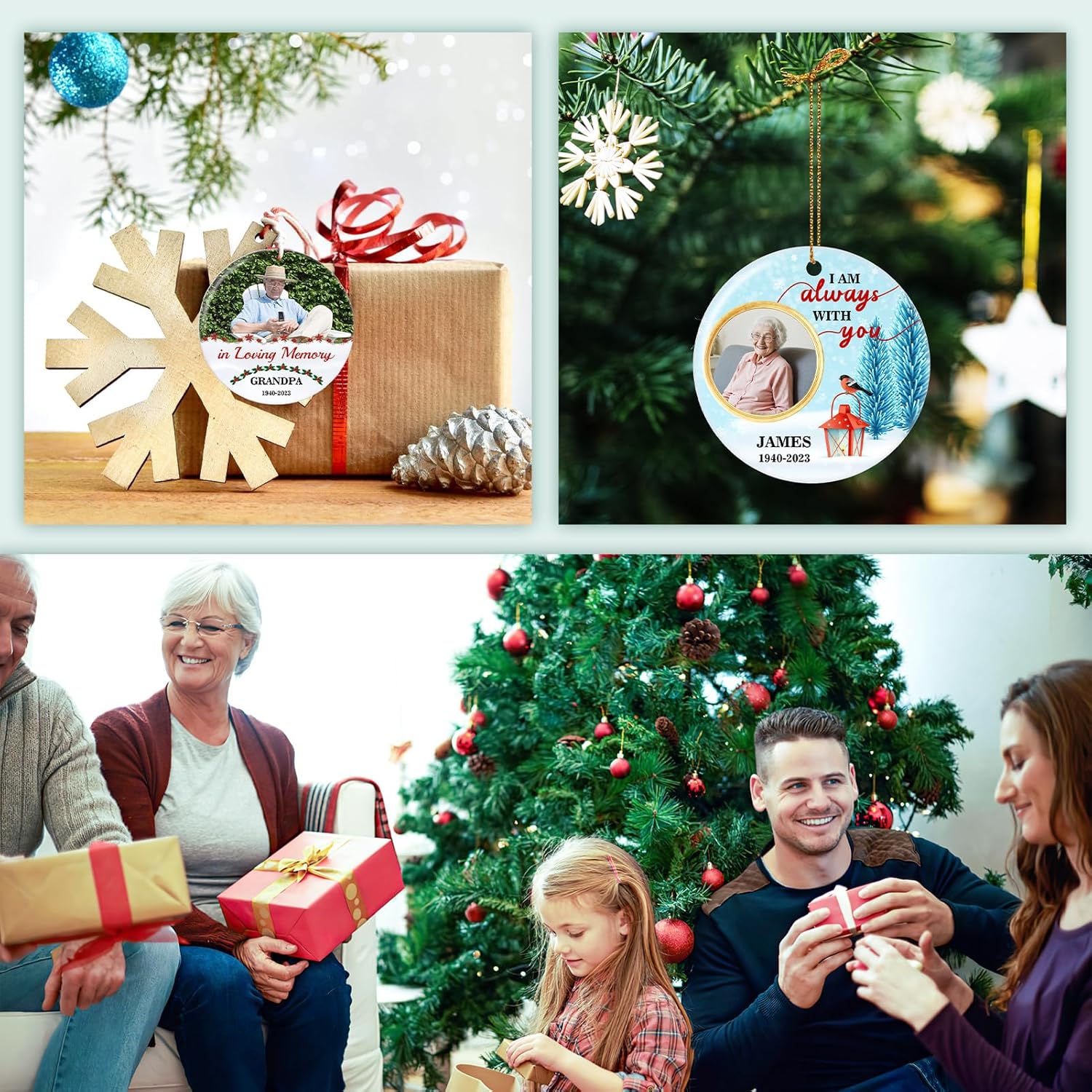 • 【Personalized Memorial Christmas Ornaments】This personalized Christmas ornament is completely customized to your needs! These Personalized Memorial Photo Ornaments are designed for you to feel together with your dear departed again around the Christmas Tree like you are used to