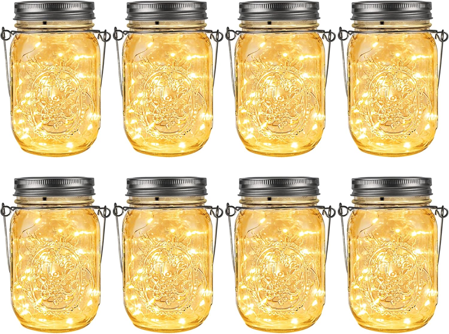 GIGALUMI Solar Mason Jar Lights, 8 Pack 30 Led String Fairy Lights Garden Lights Outdoor Waterproof Metal Lid Hanging Solar Lanterns for Outdoor, Garden, Patio, Lawn, Balcony Decoration