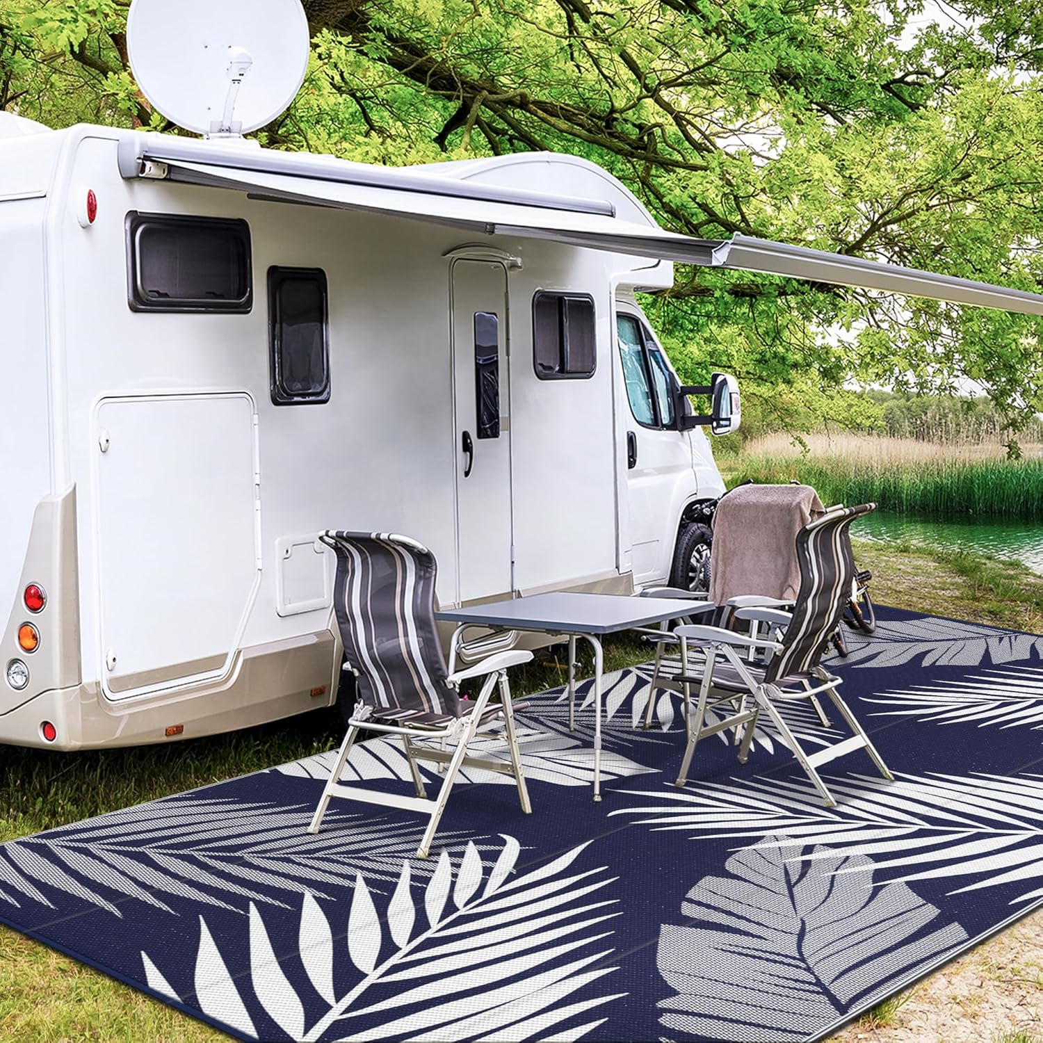 - Perfect Choice For RV Camping: Woven from lightweight plastic straws, these RV outdoor rugs fold compactly to fit in the included carry bag. This portable waterproof outdoor rug is easy to carry, with 4 corner loops and stakes to secure it. Using this camper rug reduces travel fatigue and adds plenty of space for fun — also a stylish touch for fall decor when setting up your campsite
