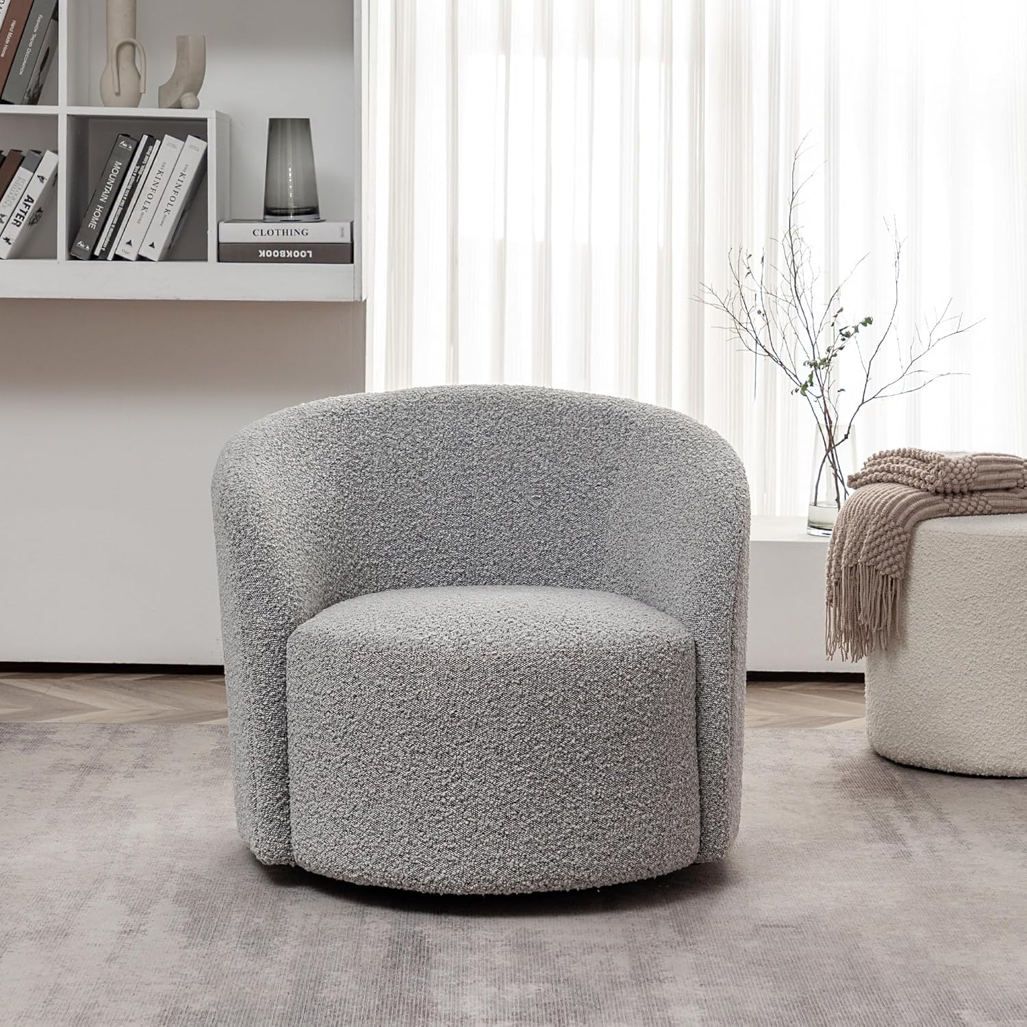 - BOUCLE UPHOLSTERY – This large Mid-Century Modern Swivel Barrel Chair is crafted with luxurious, popular boucle upholstery, providing a cozy, soft seating experience that instantly elevates your relaxation and comfort. Especially on cold days or when you are alone, bringing you the warmth of spring.