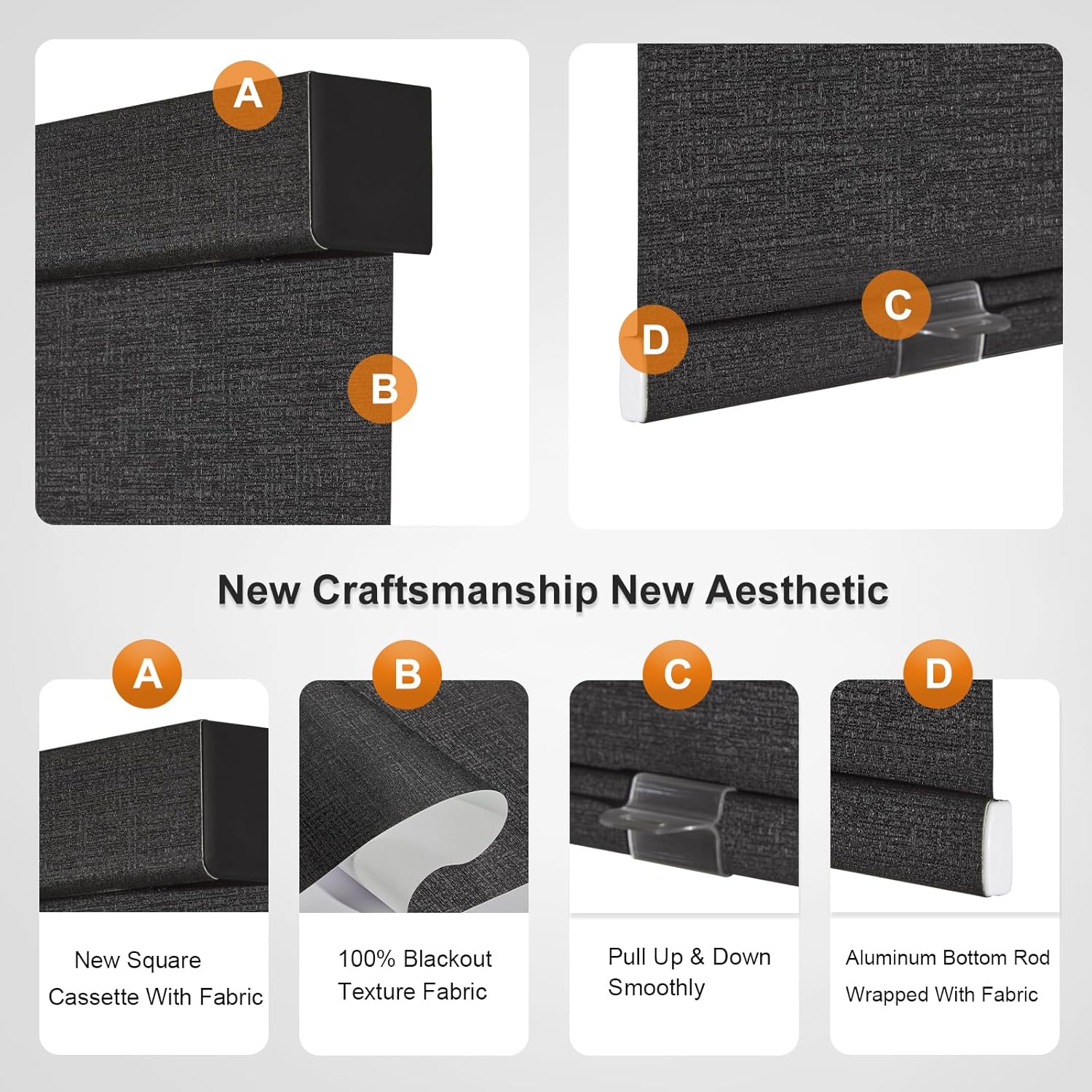 - [COLOR UNITY]: Our Roller blinds use the new valance, it is wrapped in fabric of the same color as the shade as well as the lower rod, the shades uniform in color and makes the room more harmonious and beautiful. This cordless shades made of blackout jacquard fabric which can filter light, protect UV rays and heat insulation.In addition, instead of plastic brackets, our upgraded metal brackets are more durable and make the fabric closer to the window so as to ensure a better shading.