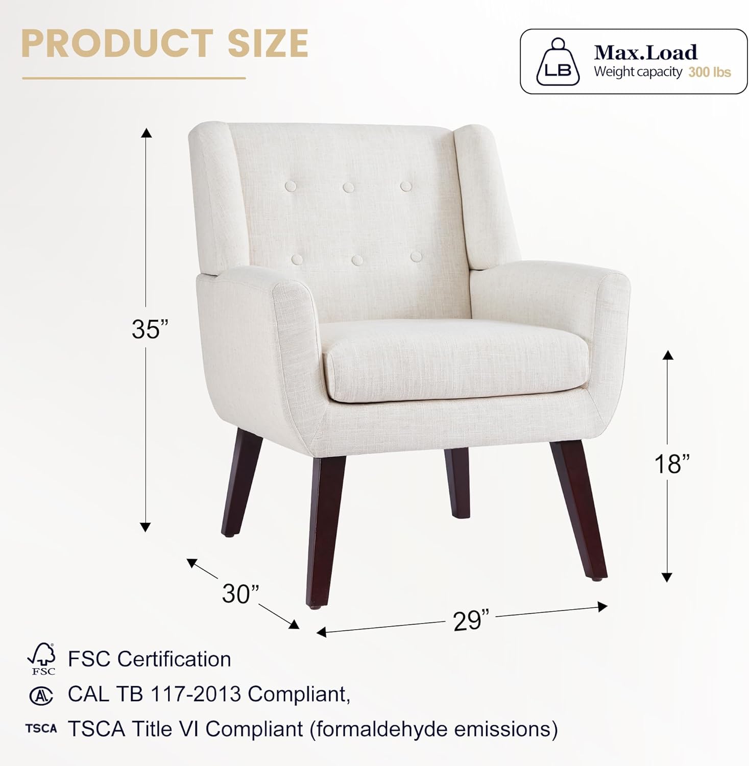 HUIMO Button-Tufted Accent Chairs Set of 2,Upholstered Reading Living Room Chair,Mid Century Modern Chair with Linen Fabric, Club Chair,Comfy Arm Chairs for Living Room,Bedroom,Beige