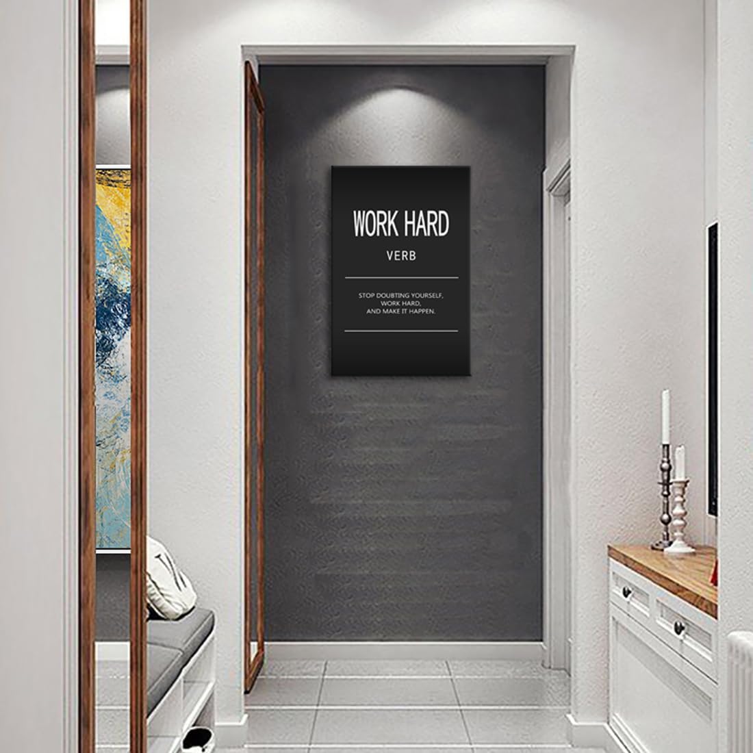 Inspirational Wall Art Office Decor Motivational Entrepreneur Quotes Canvas Painting Work Hard Verb Pictures Posters and Prints Artwork Modern Inspiring Gym Living Room Decor Framed[24" W x 36" H]