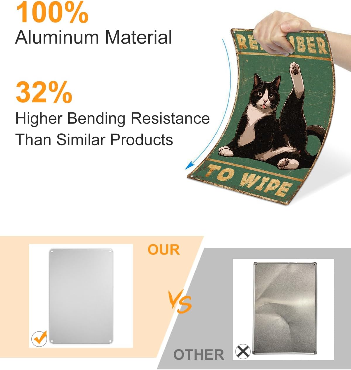 ALKB Bathroom Tuxedo Cat Sign - Remember to Wipe - Cat Lover Gift 8x12 Inch Vintage Metal Sign for Bathroom Decorations