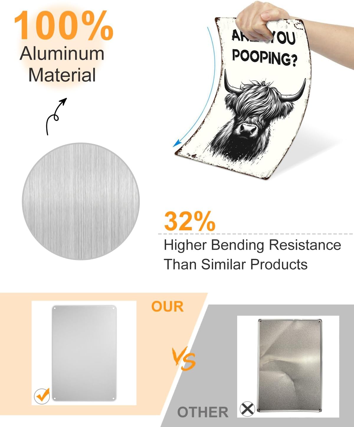 ALKB Funny Highland Cow Are You Pooping Metal Signs Vintage Farmhouse Bathroom Wall Decor Highland Cow Lovers Gift 8 x 12 Inch