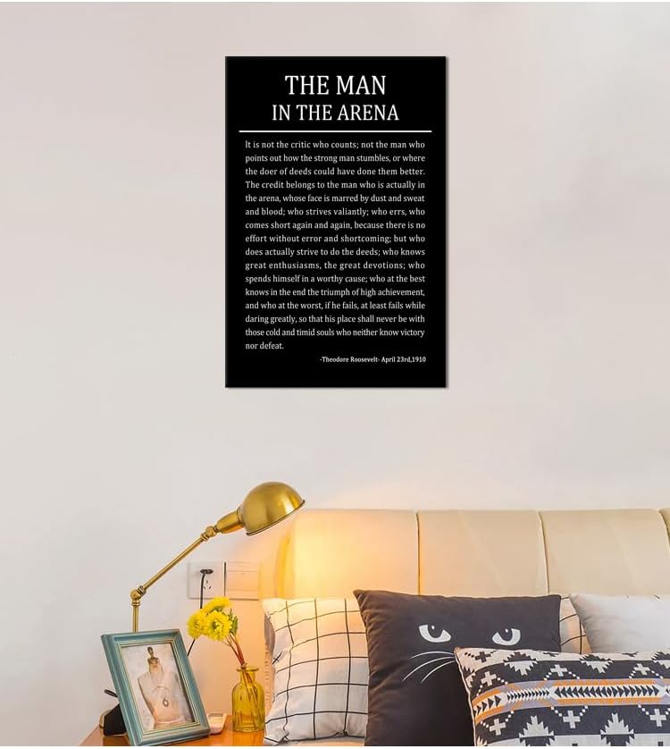 The Man In The Arena Inspirational Canvas Wall Art Motivational Poster Theodore Roosevelt Quotes Canvas Prints Artwork for Living Room Office Home Decor Painting Stretched and Framed [12''Wx 18''H]