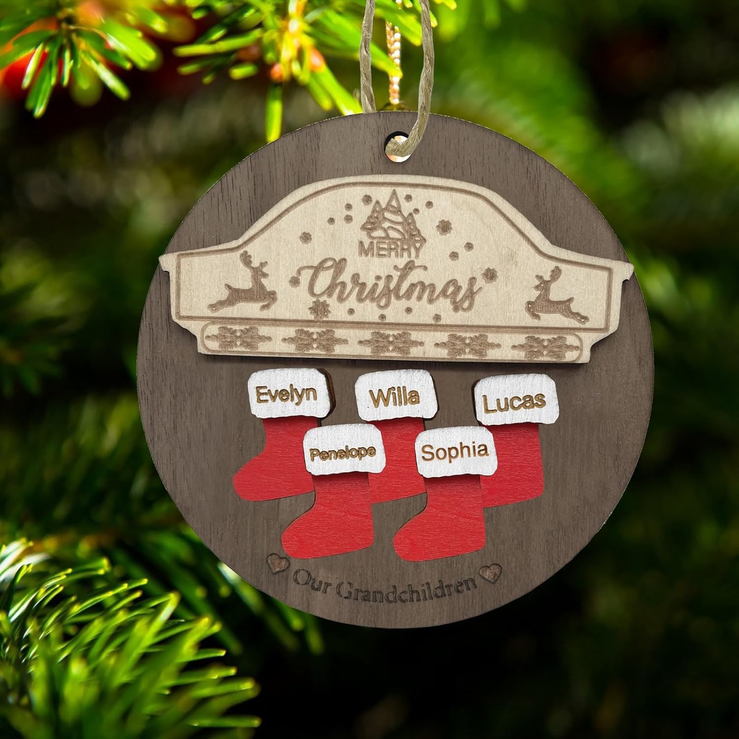 2025 Christmas Ornaments Personalized Christmas Family Name Ornaments,Custom Stocking Wooden Christmas Ornament Family of 2/3/4/5/6/7/8,Customized Xmas Ornament Tree Deorations,Personalized Gifts