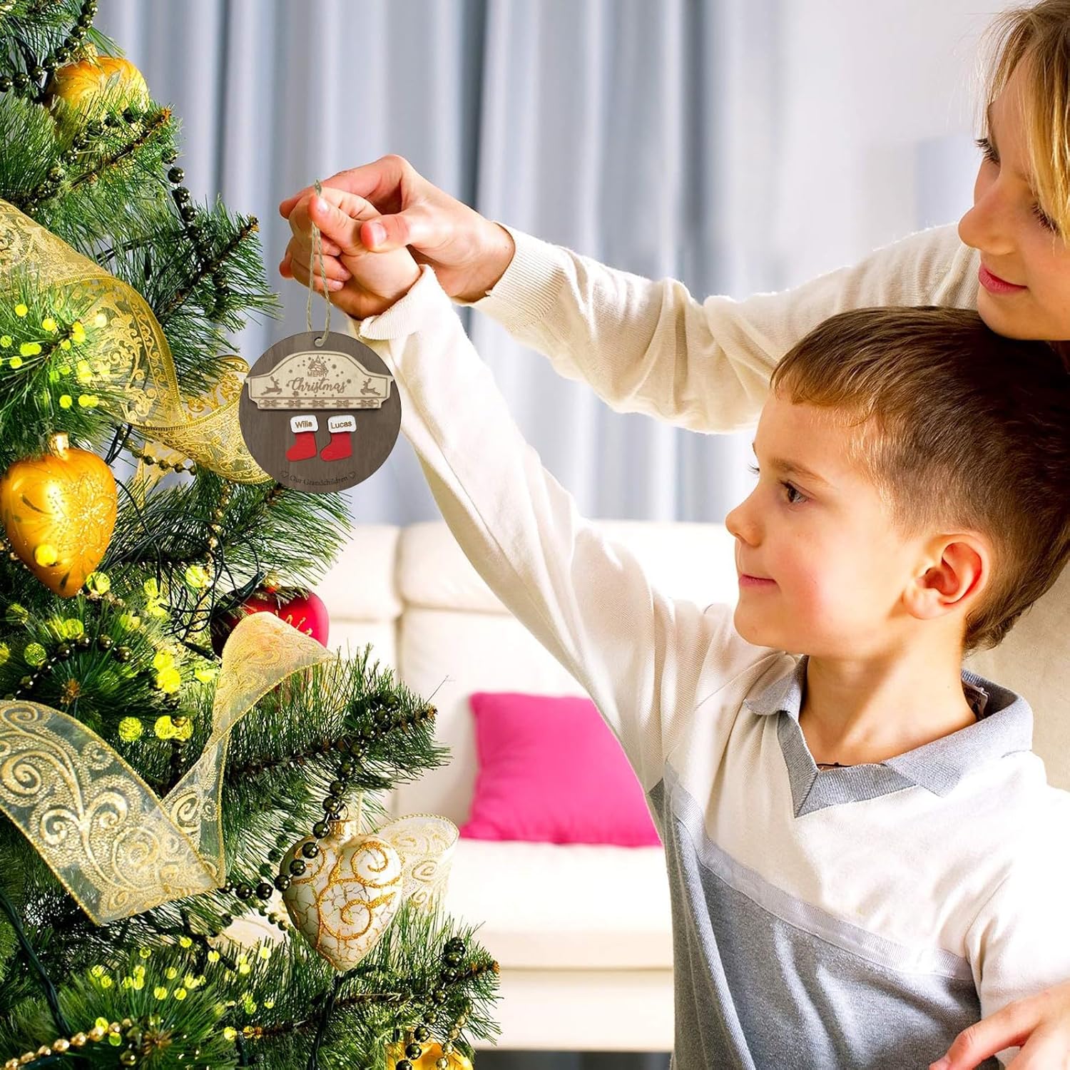 - Personalized Christmas Tree Ornaments-Add your Christmas blessings and familys'names, get one cute Christmas gift for them. Also great personalized Christmas warm gifts for your friends, neighbors, colleagues, etc.