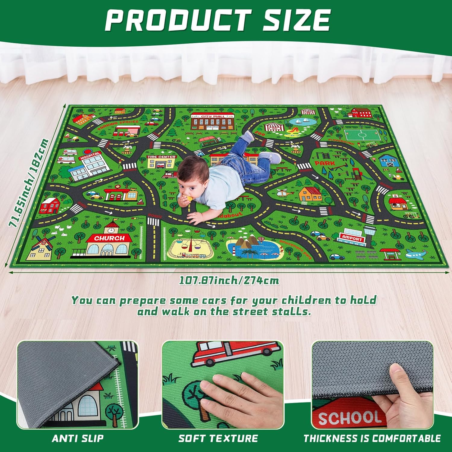 - Large Play Area Rug: this kid city life carpet is 6 x 9 ft/ 182 x 274 cm, provides ample space for multiple children to play together; Your kids will own a jumbo play field that is more than sufficient for your tiny tots to set up their small world of city pretend play