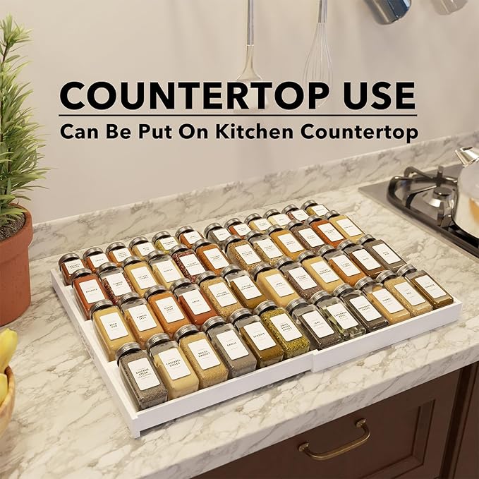 - STURDY CONSTRUCTION - The drawer spice rack is made of durable solid bamboo; Live an organized and sustainable life with this bamboo seasoning drawer organizer