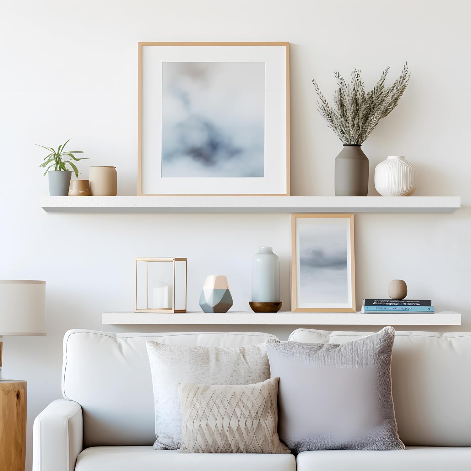 - Space-Saving Solution: With each floating shelf measuring 47W x 9.25D x 1.5H inches each, you get optimal space utilization without sacrificing style. These shelves are perfect for showcasing your favorite decor items while decluttering your space.