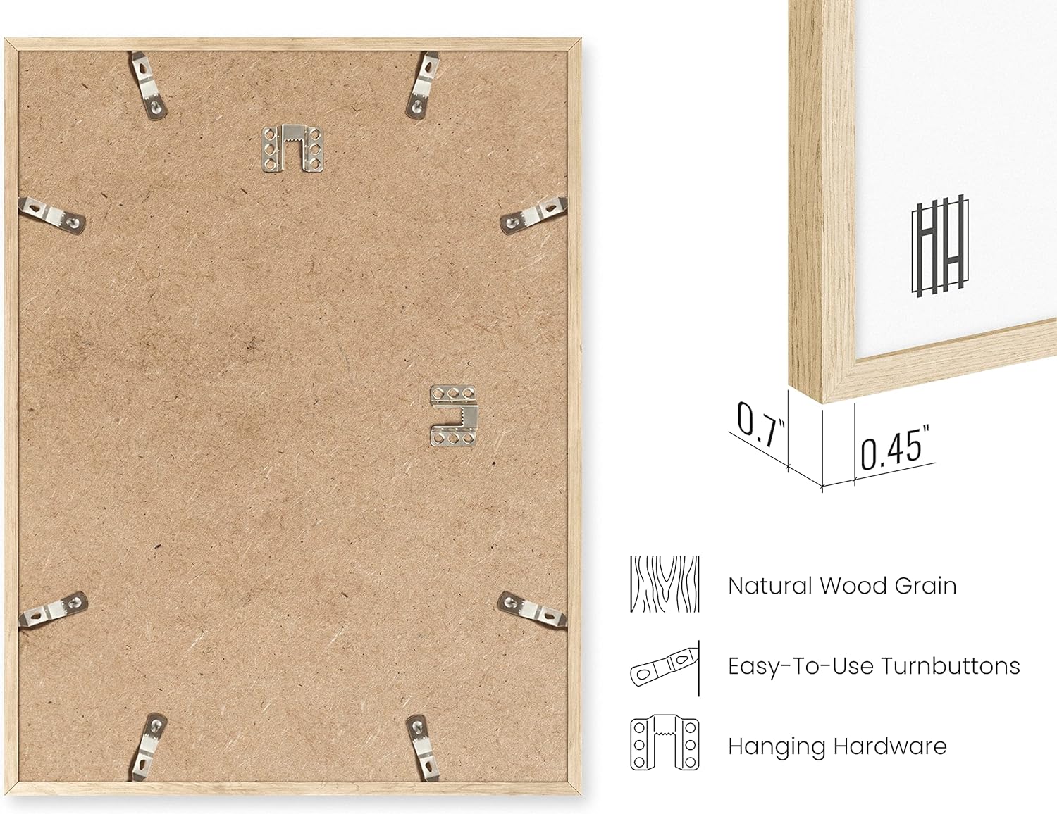 HAUS AND HUES Square Picture Frames 11 x 14 Set of 9 - Photo Gallery Wall Frame Set, Wood 11x14 Frames, 11 x 14 Frames Gallery Wall Set, 11x14 Frame with Mat, Square Frames 11x14 (Beige Oak Frames)