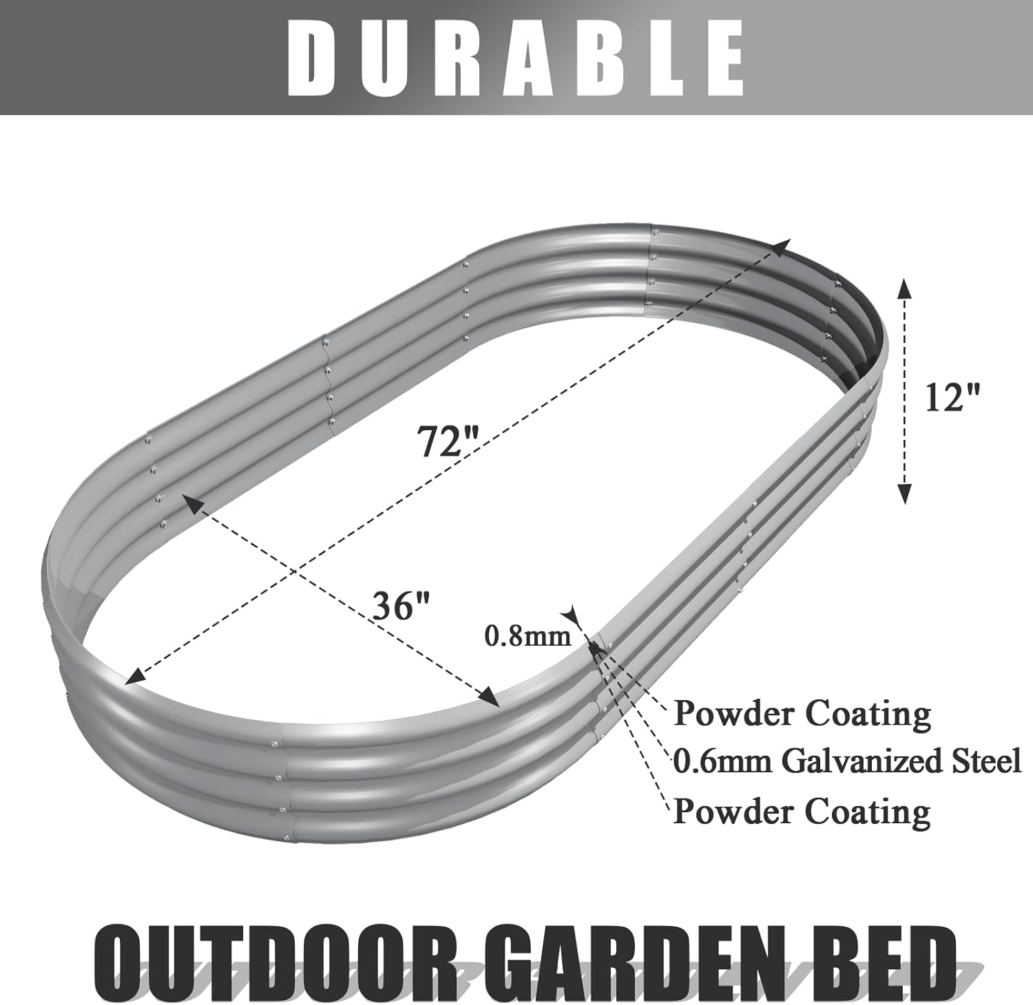 - 【Outdoor Garden Bed Size】72''(L) x 36''(W) x 12''(H), provide extra large growing space to meets your planting needs and the oval shape makes the garden more tidy